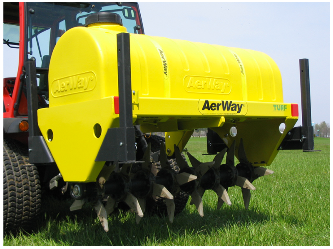 L’AerWay è un arieggiatore-decompattatore a trascinamento a lame utilizzato per diminuire drasticamente il compattamento del prato, migliorando il drenaggio, gli scambi gassosi e sviluppando in profondità l’apparato radicale.