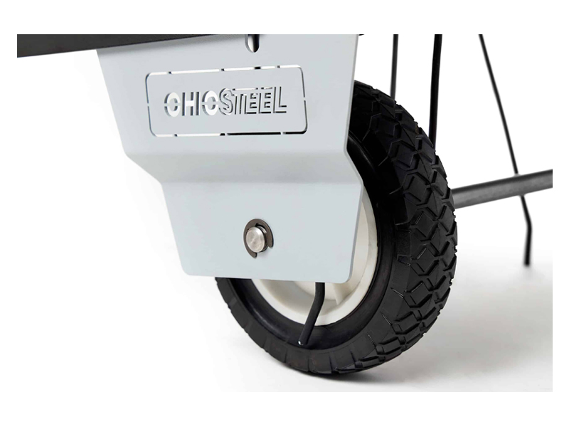 Le ruote semipneumatiche da 18 cm sono posizionate strategicamente per fornire un equilibrio ottimale durante l'uso.