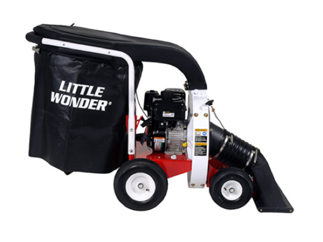 L’aspiratore HPV della Little-Wonder è dotato di motore 6 hp B&S e di un capiente cesto di raccolta da 300 litri.
