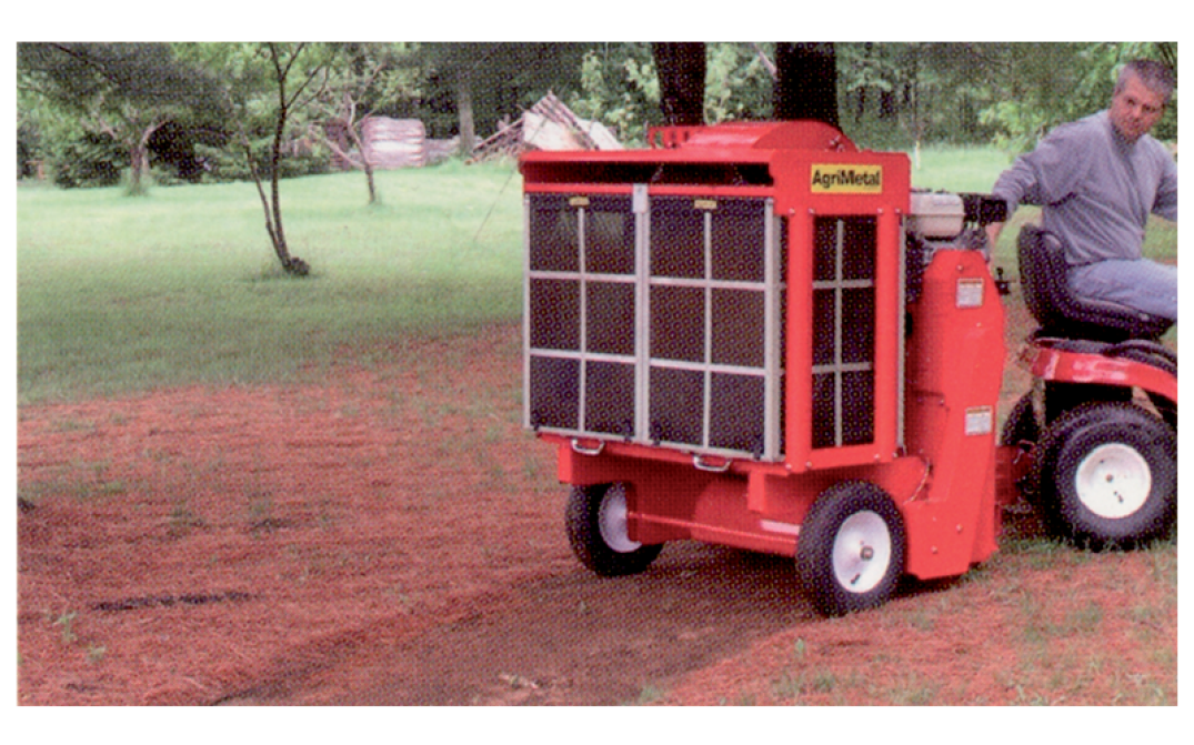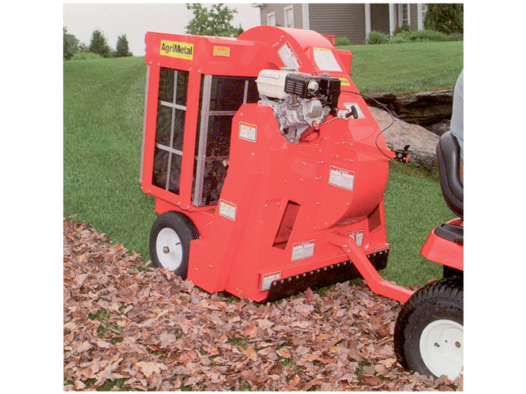 L'aspiratore a traino 38A75 di AgriMetal è dotato di motore 5.5 hp Honda, rotore con denti mobili in nylon e ruote pneumatiche High-Flotation. La sua larghezza di lavoro è di 97 cm con una capacità di raccolta totale di 360 litri.