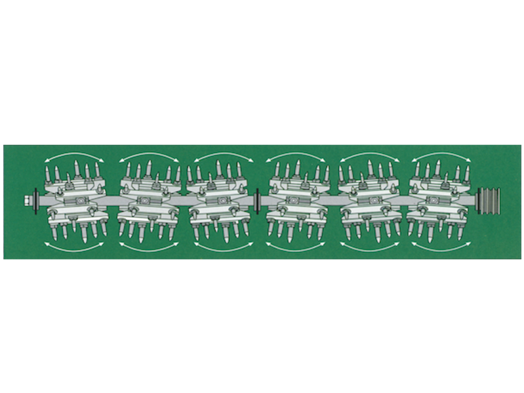 Il meccanismo di funzionamento crea continue oscillazioni, fino 1025 al minuto per ogni dente, creando una frantumazione nel profilo del suolo fino a 15 cm senza nessun danno al manto erboso.