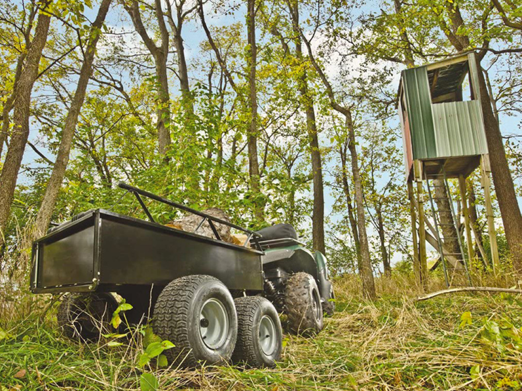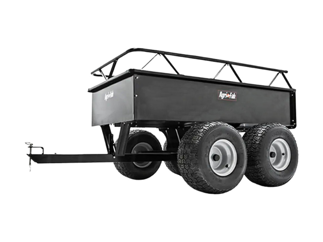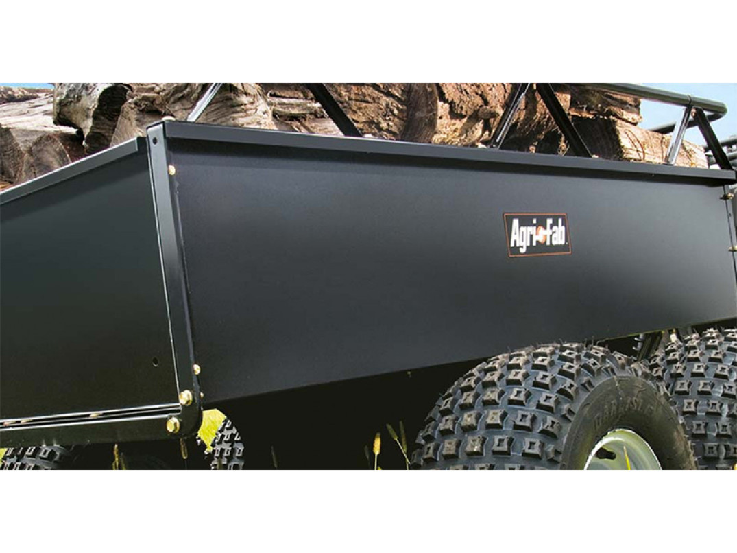 Il carrello a traino in acciaio dell'Agri-Fab modello ATW ha una capacità di 390 litri.