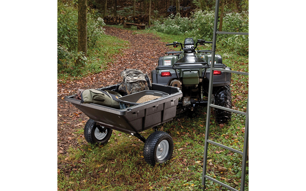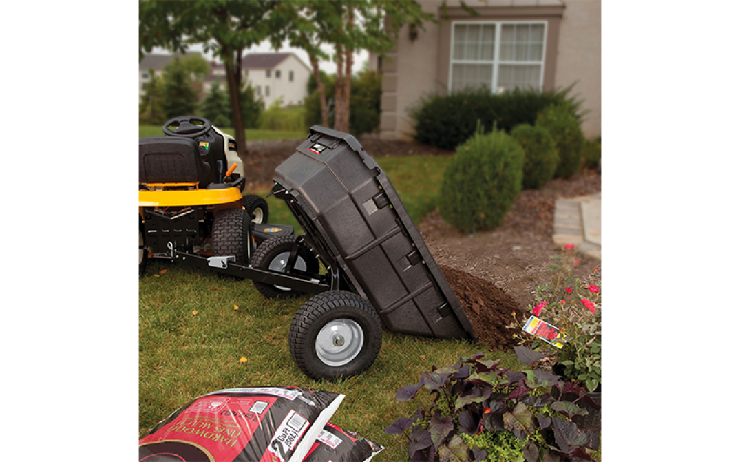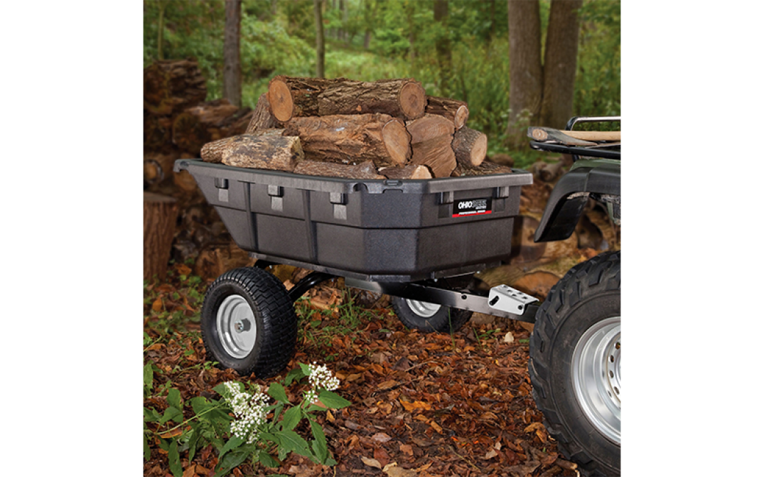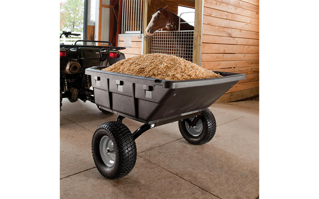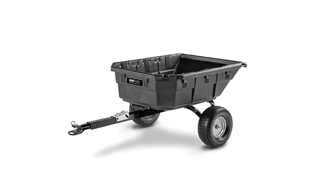 Il carrello a traino in plastica modello 4048P-HYB dell'Ohio Steel con capacità 425 litri e portata 567 kg è ideale per lavori di trasporto di grandi dimensioni. Trasporta e scarica facilmente pacciame, terra, rocce, legna da ardere e altre forniture per il giardinaggio.