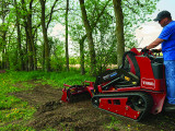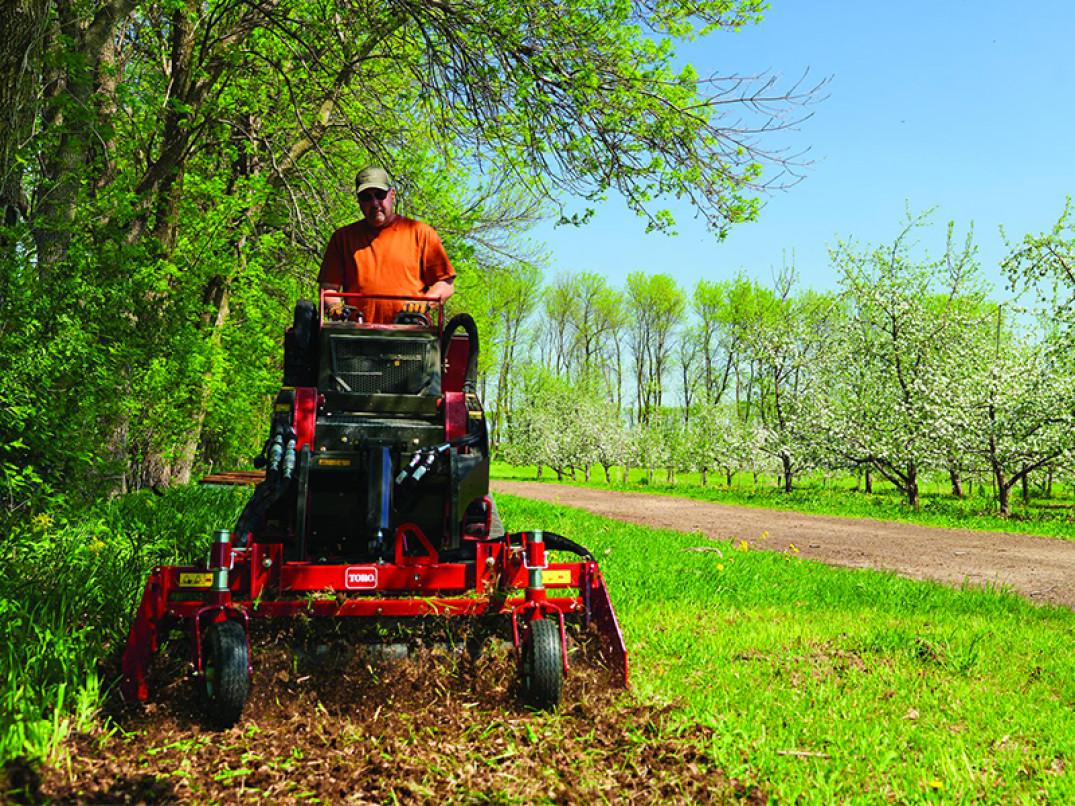In un unico passaggio il tamburo rotante del rastrello polverizza il terreno irregolare, rompe i punti più alti, riempie quelli più bassi e rimuove sassi e detriti.
