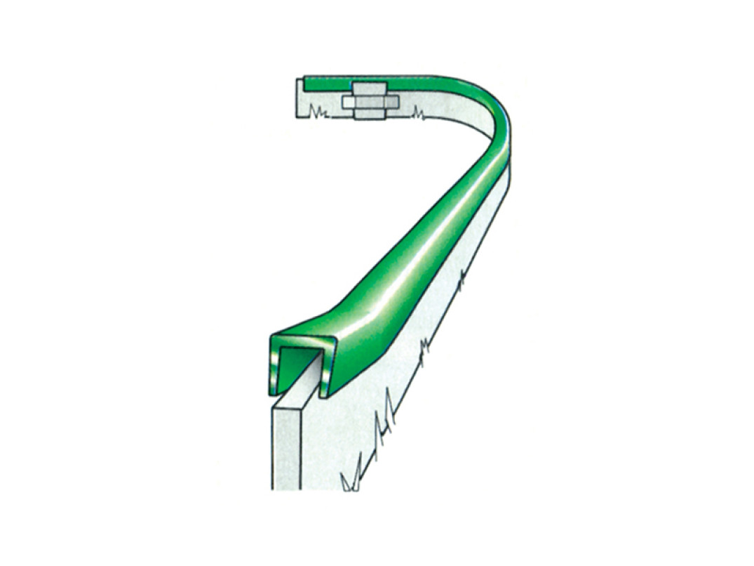 Copri bordo in gomma di colore verde. Fornisce una copertura in gomma del profilo della bordura, per eventuali applicazioni vicine a piscine o in aree pedonali.