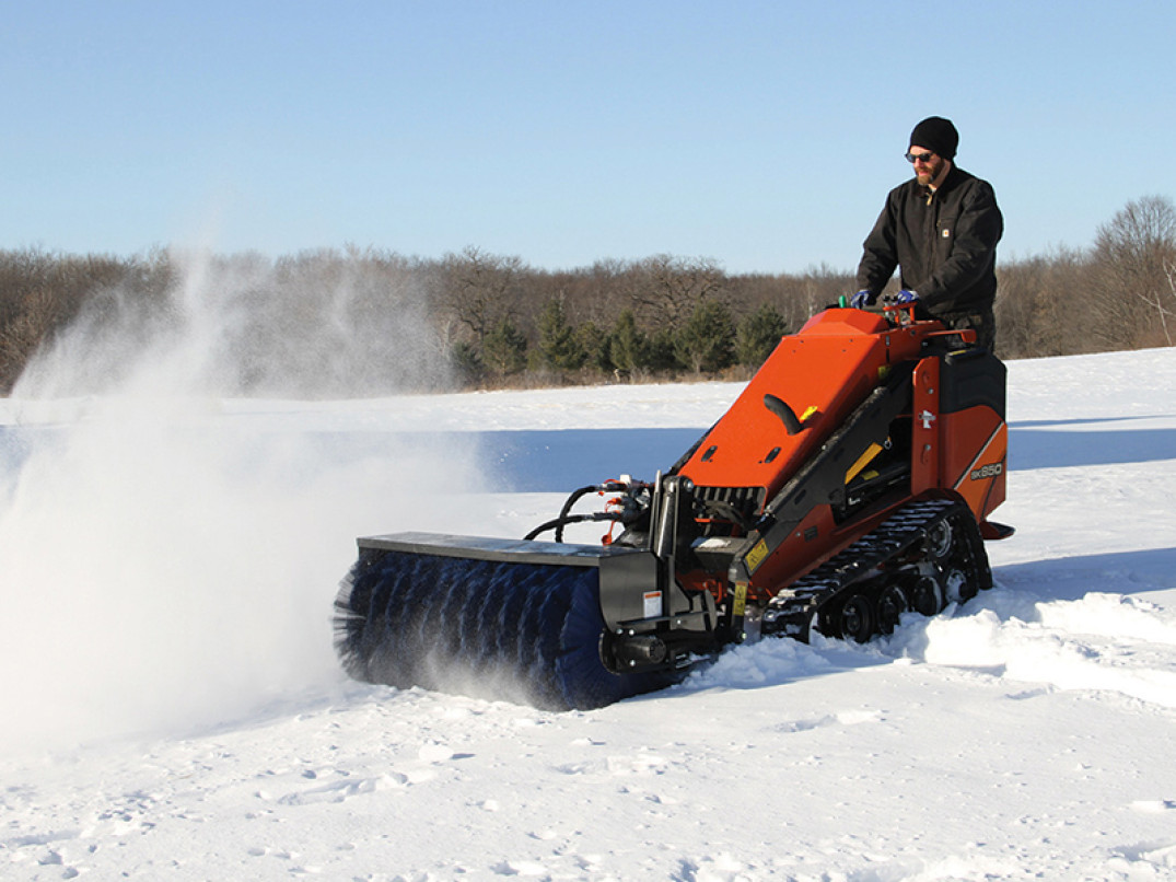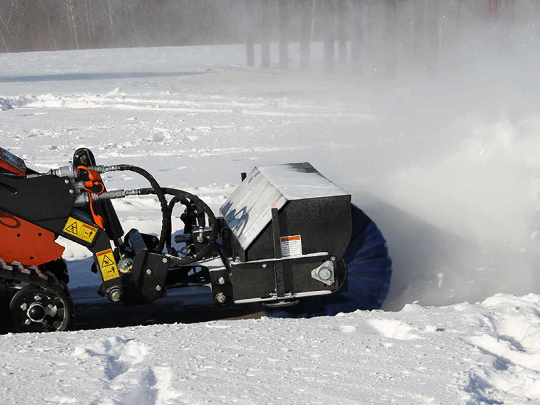 La spazzola è inclinabile fino a 25° a destra e a sinistra ed è stata progettata per lo spazzolamento di sporco pesante, neve ed altro materiale indesiderato.