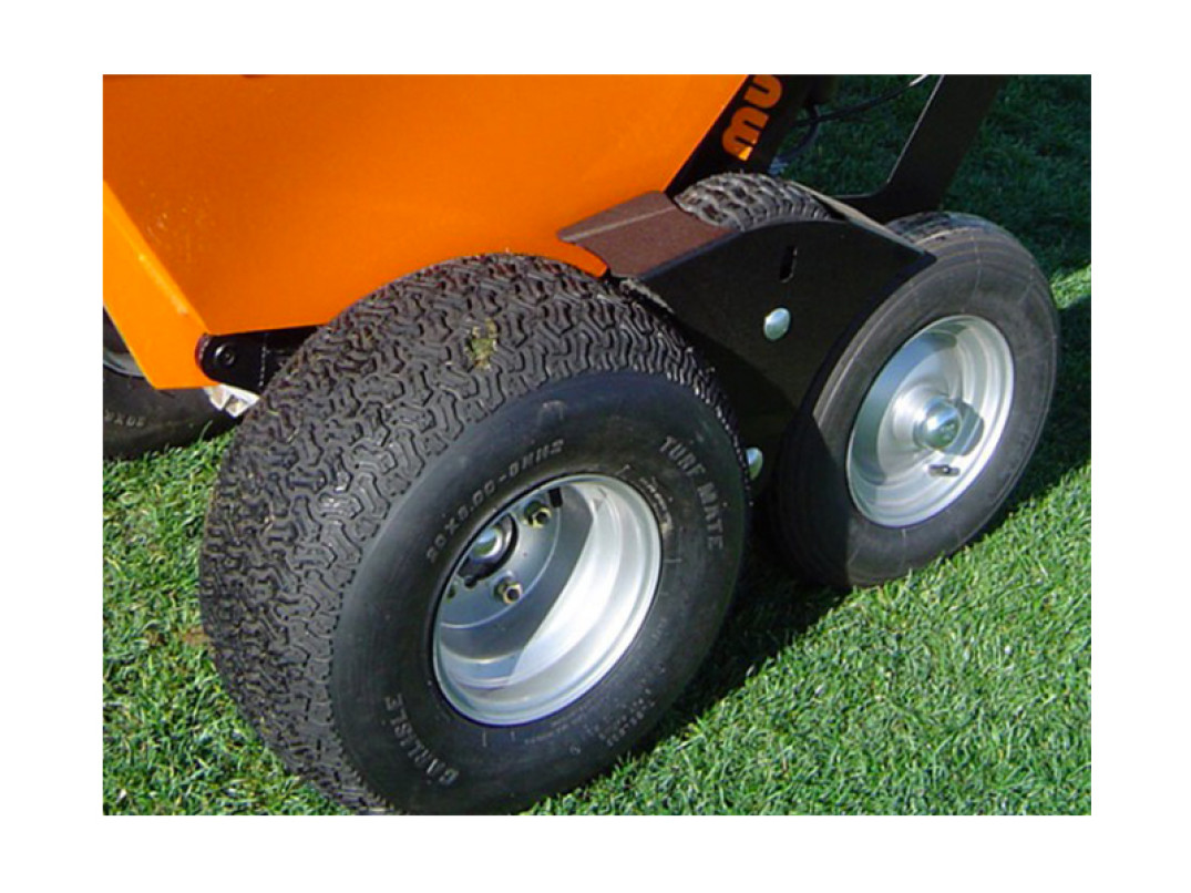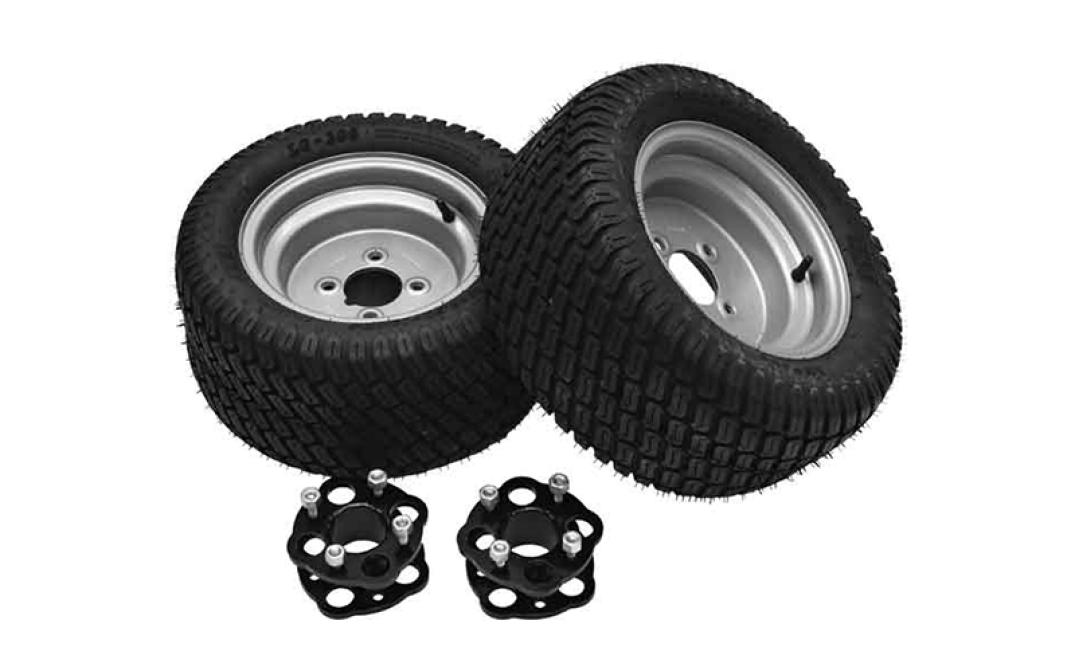 Il set di pneumatici per tappeti erbosi è composto da 2 ruote complete di staffe. Ideale per superfici morbide e delicate, come prati, campi da golf, piazzole ed erba artificiale.