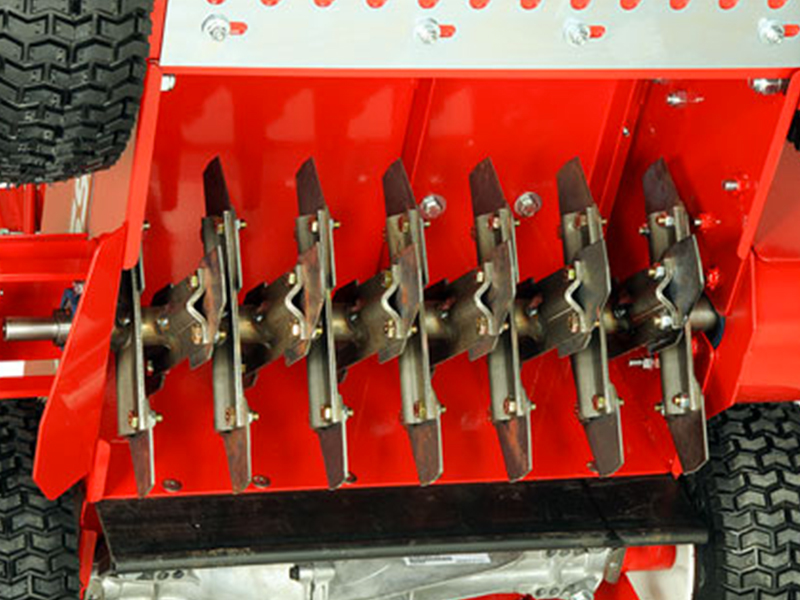 Semina 13 file per una larghezza di lavoro di 40 cm, la tramoggia ha una capacità di 18 kg ed il rotore è a 28 lame. Inoltre è dotata di motore Hona 9 hp.