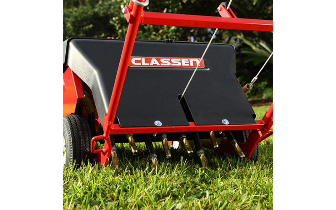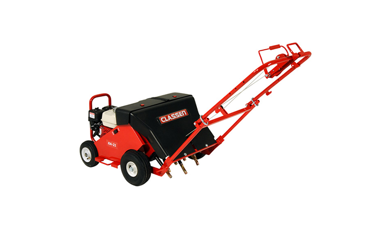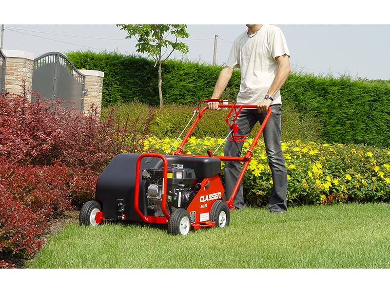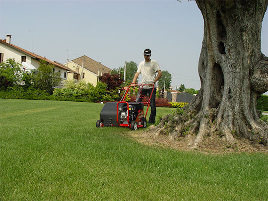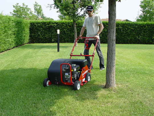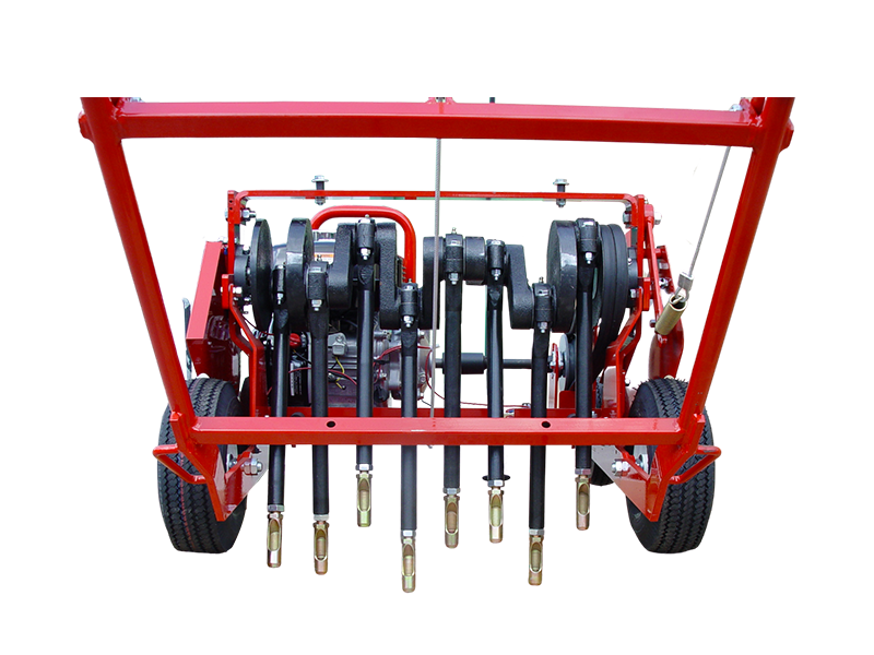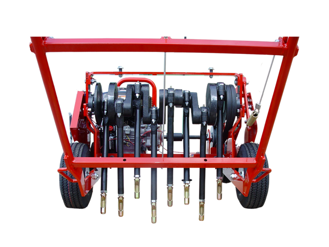 È dotata di motore 5.5 hp Honda e interruttore ON/OFF posizionato vicino al motore. Ha una larghezza di lavoro di 41 cm e 8 fustelle che si muovono alternativamente a 450 giri al minuto.