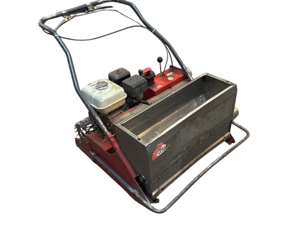 La seminatrice ha una larghezza di semina di 72 cm e una capacità della tramoggia di 55 litri, è dotata di motore a benzina e dispone di 3 velocità di avanzamento e 1 in retromarcia.