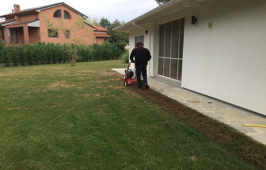 Arieggiatore a molle TR-20 usato adatto per prati delicati con forte presenza di feltro. Il rotore da 104 molle di cui è dotato permette l'asportazione del feltro senza mai rovinare il manto erboso.