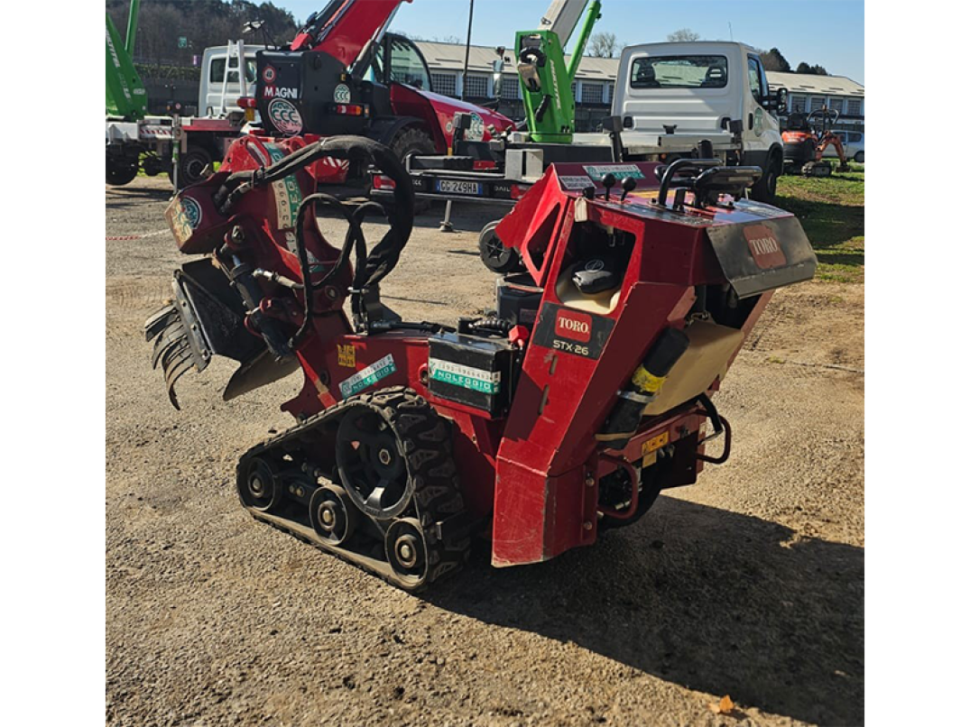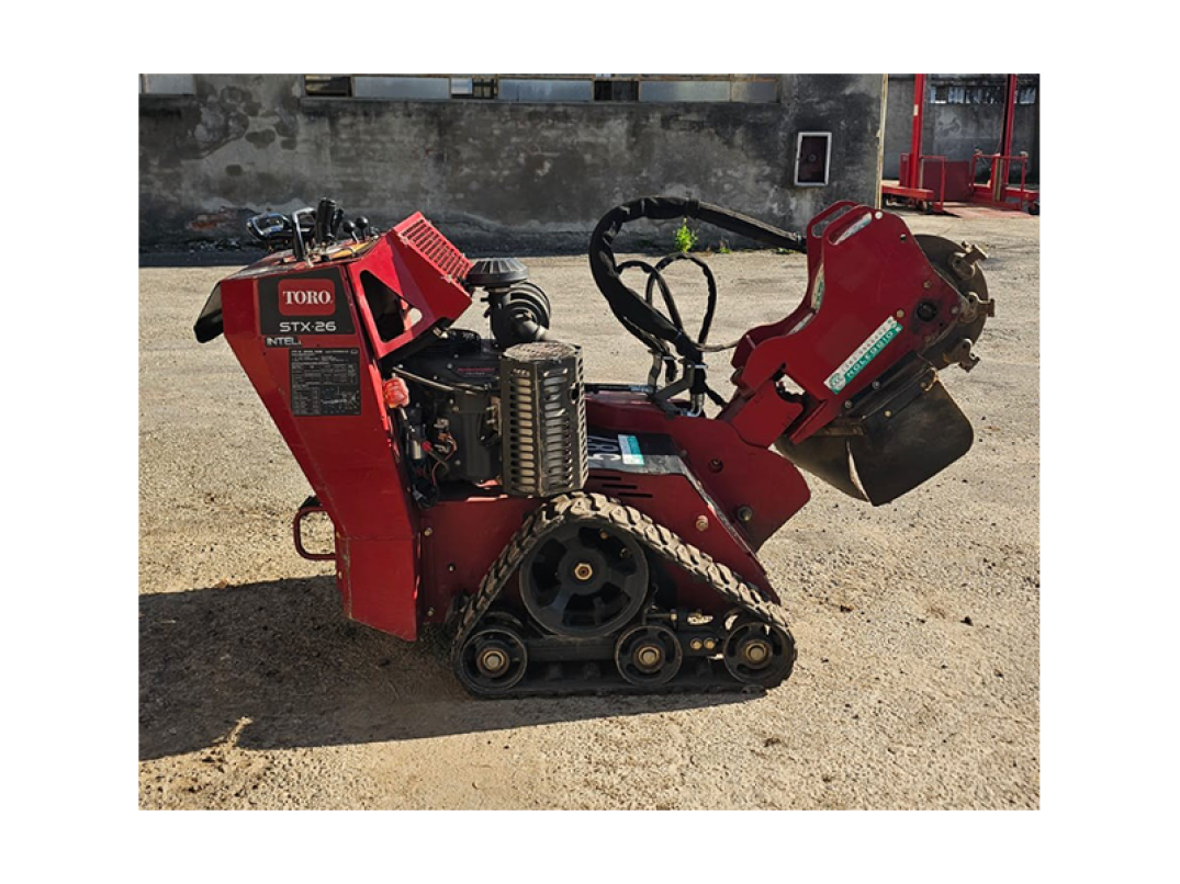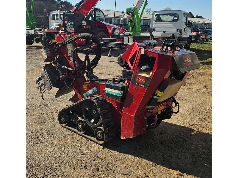 Fresaceppi semovente STX-26 della Toro usato dotato di 12 denti Green-Teeth e motore 26 hp Kawasaki. Garantisce un'ottima visibilità durante tutta la fresatura ed è molto intuitivo nell'utilizzo.