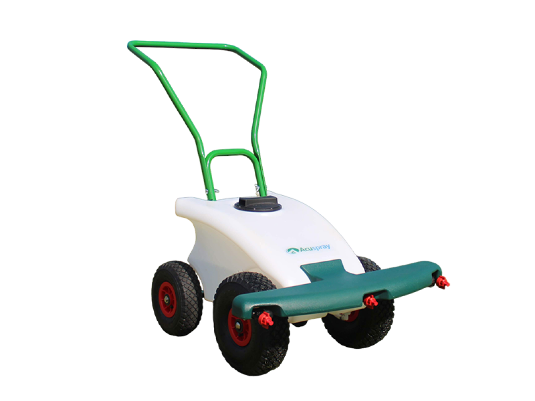 Irroratrice Acuspray a spinta progettata per l'applicazione di un'ampia gamma di prodotti su tappeti erbosi e superfici dure.