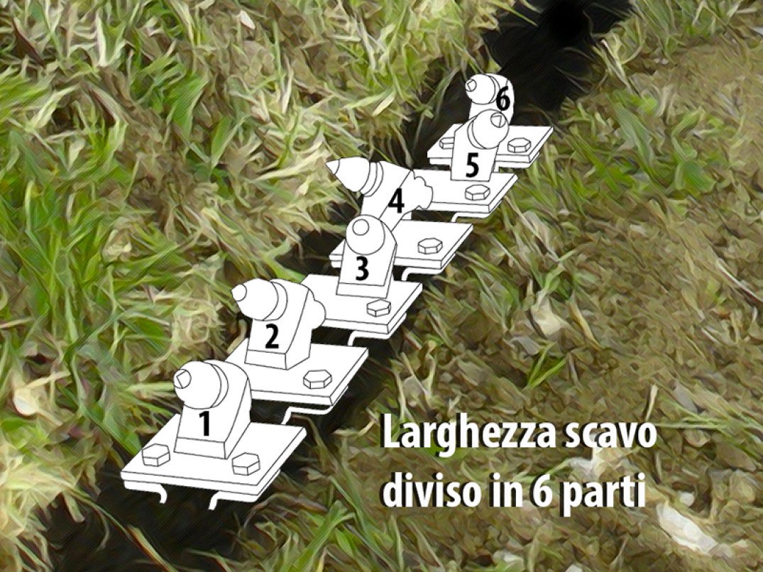 L’inclinazione di ogni dente favorisce un forte impatto di scavo nei terreni in condizioni molto compatte e sassose. Il suo utilizzo infatti è ideale sia in terreni sciolti per una buona pulizia della trincea, che in terreni molto compatti e sassosi.