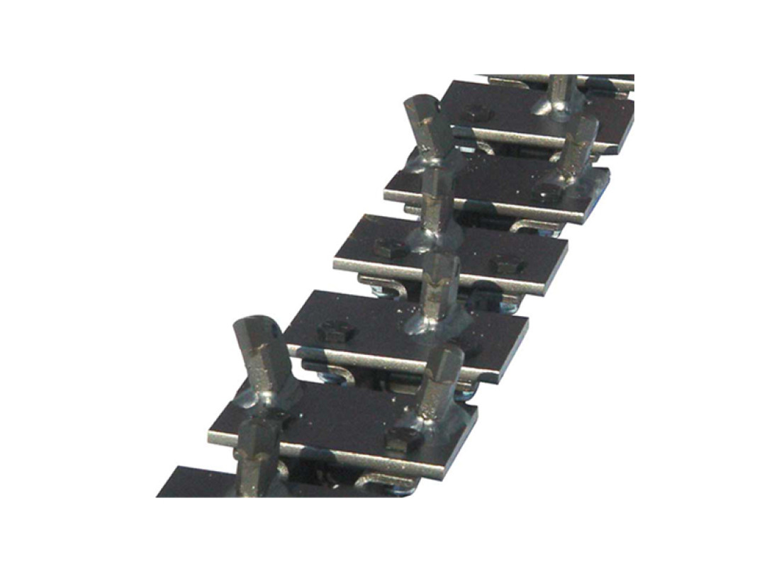 I denti al carbonio sono forgiati con trattamento a caldo, che ne aumenta la durezza ed il mantenimento del profilo di taglio.