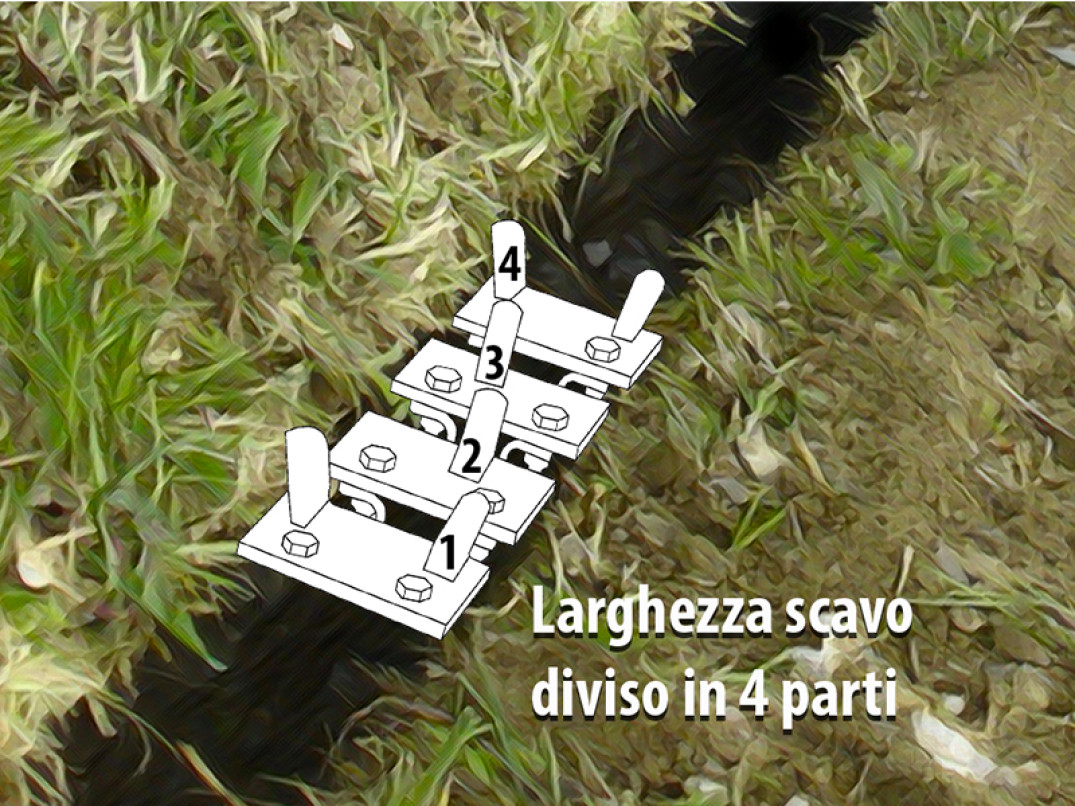 La suddivisione della larghezza di scavo di 8 cm avviene in 4 parti.