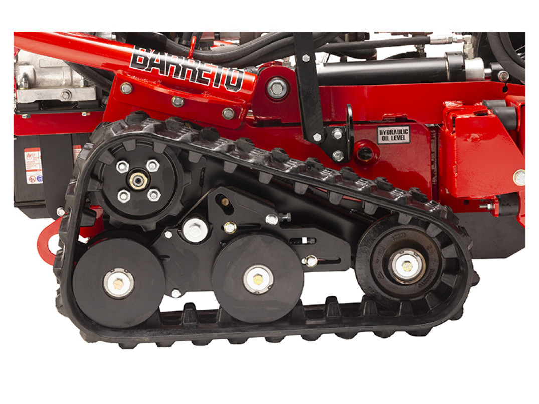 Il sistema di cingoli flottanti con movimento indipendente consente di seguire qualsiasi profilo del terreno rendendo molto fluido lo spostamento, sempre a contatto con il terreno, riduce la pressione sul suolo aumentando al tempo stesso la trazione.
