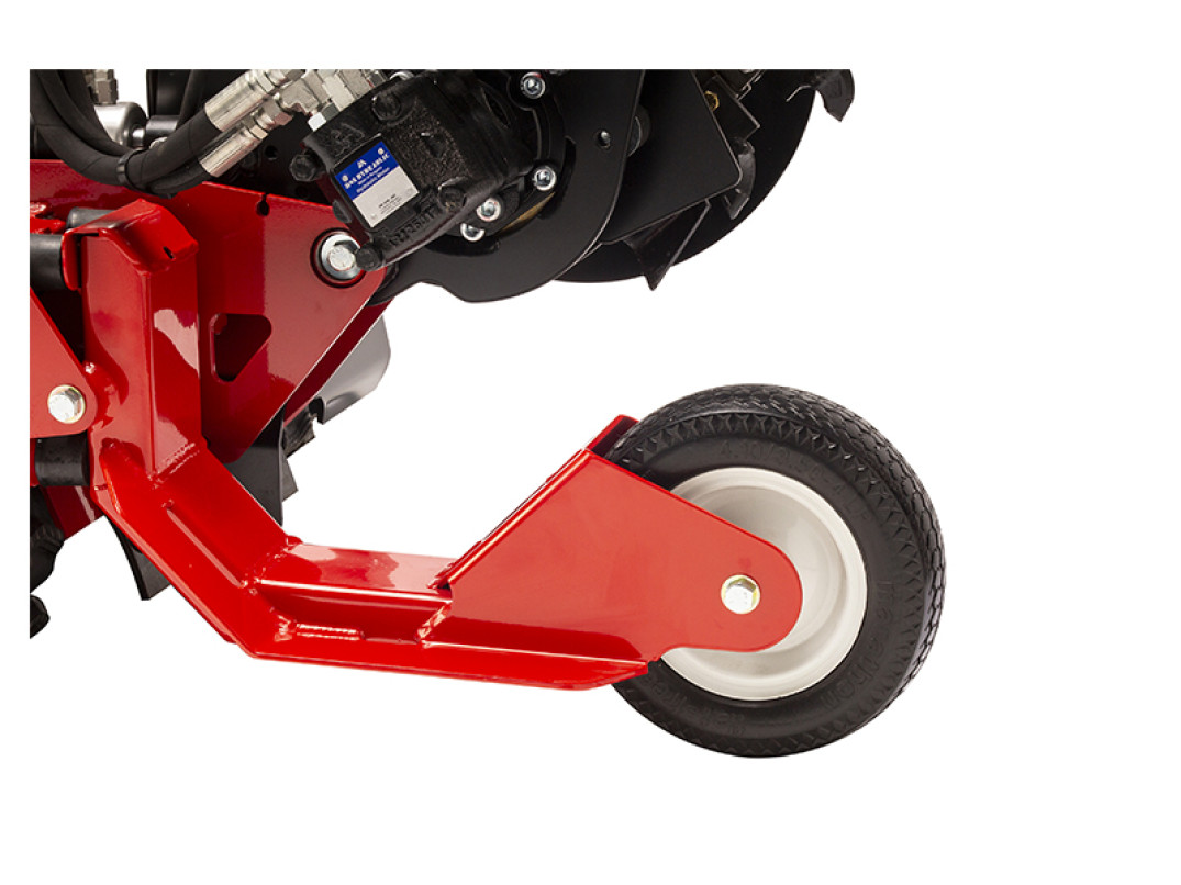 Comandi semplici e facili da usare. La tensione del braccio può essere facilmente regolata quando necessario. La trasmissione a velocità variabile consente all'operatore di regolare la velocità dei cingoli in base alle condizioni del terreno, mantenendo uno scavo dritto.