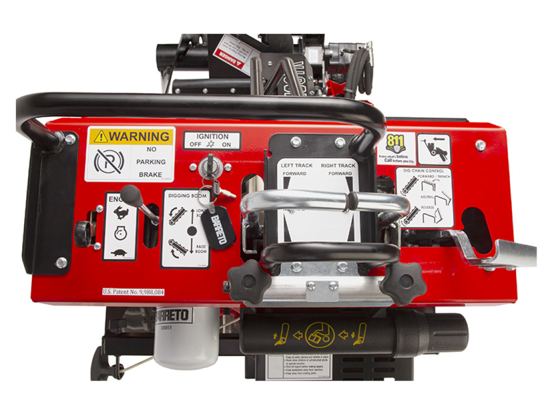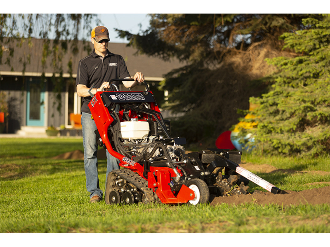 La catenaria cingolata 1324STKH della Barreto unisce alte prestazioni ed ottimizzazione del lavoro di scavo. Completamente idraulica, è dotata di motore 13 hp Honda e catena Tigre, esegue scavi con larghezza di 10 cm e profondità 60 cm.