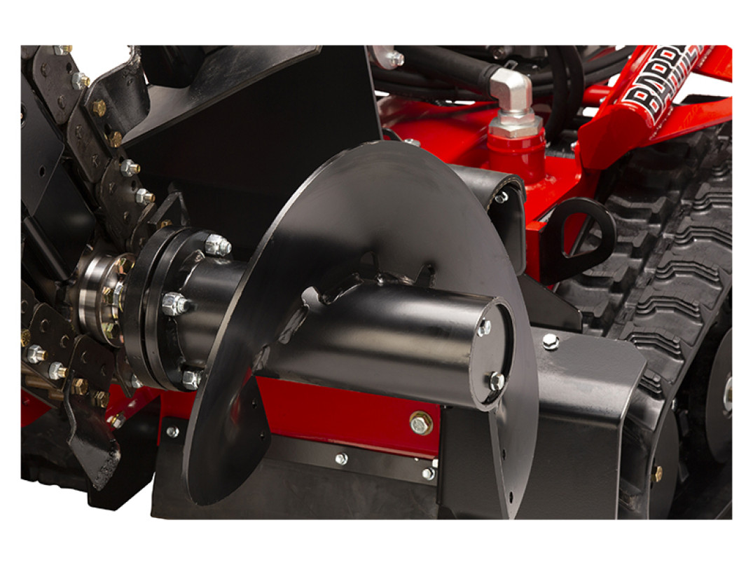 La grande dimensione dei cingoli consente di spostarsi su differenti tipologie di terreno, permette inoltre di assorbire molto bene i contraccolpi causati da rocce, sassi, radici o da altri ostacoli presenti nel terreno durante lo scavo.