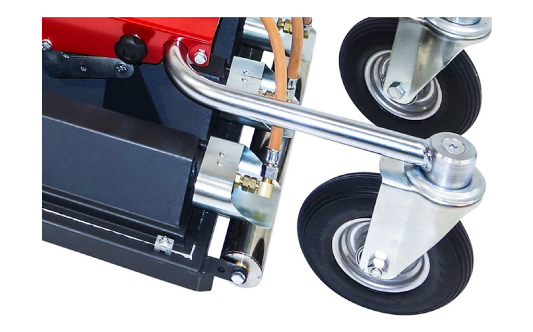 Due ruote pivotanti lo rendono agile negli spostamenti in qualsiasi spazio, anche in quelli più limitati. Il suo utilizzo è adatto su ghiaino, superfici rigide anche irregolari, lastricati, cimiteri ecc.