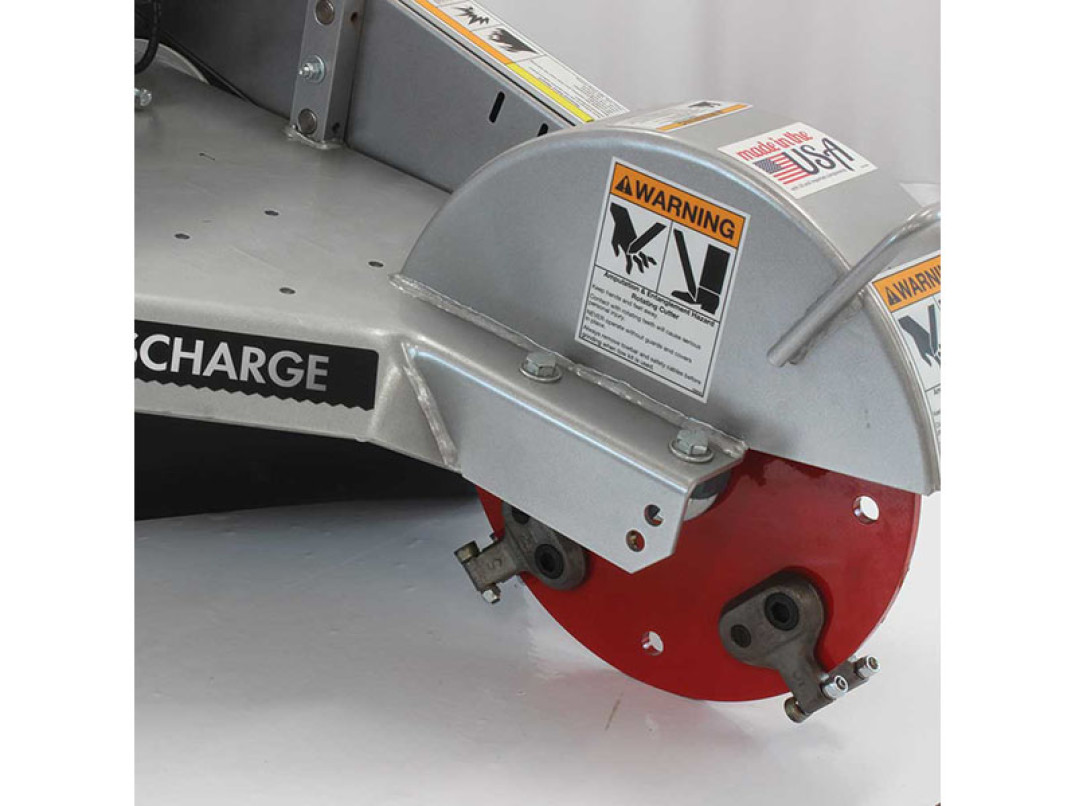 L'esclusivo scarico laterale tiene il macinato lontano dalla macchina e dall'operatore.