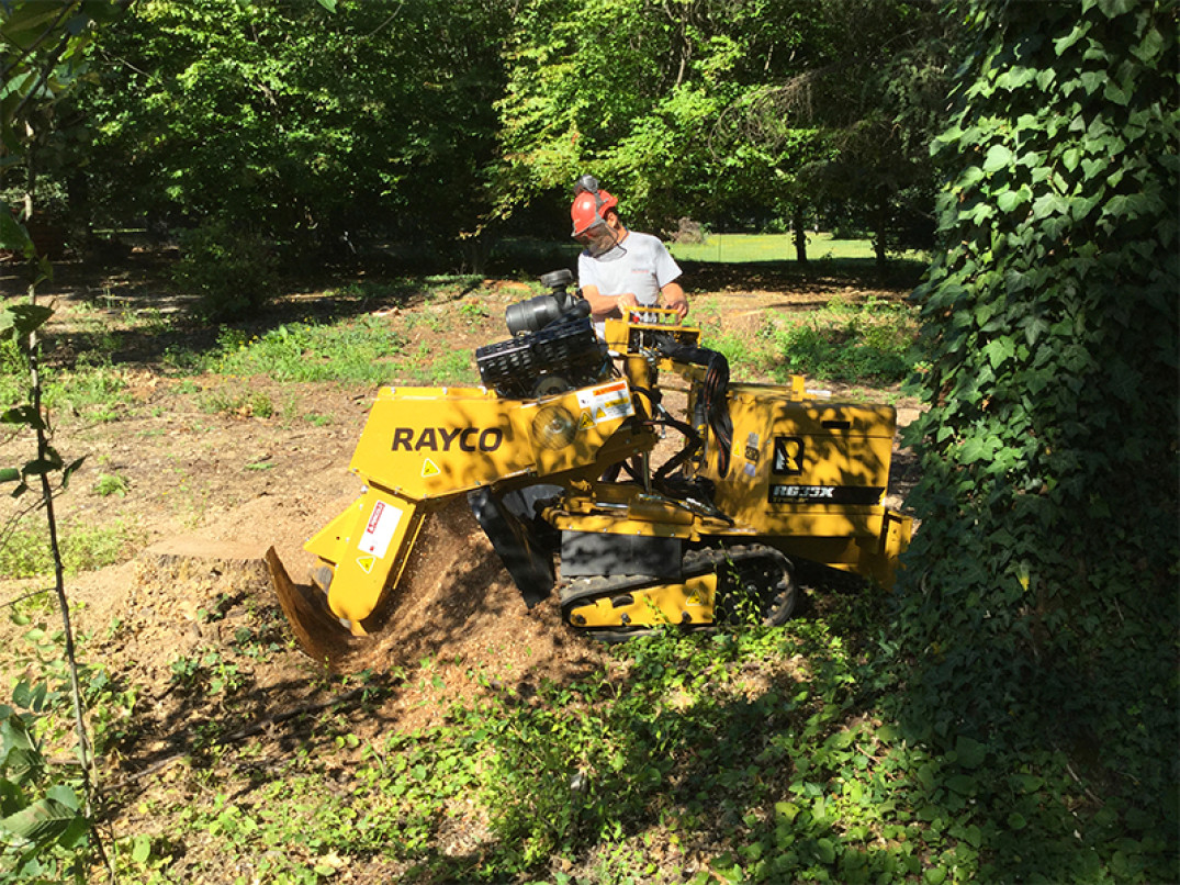 Il fresaceppi cingolato RG37-T è equipaggiato con 18 denti Super Tooth® e motore 37 hp Vanguard.