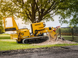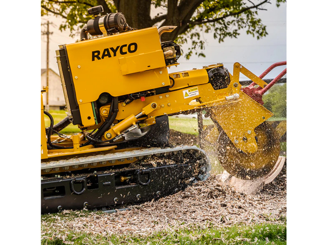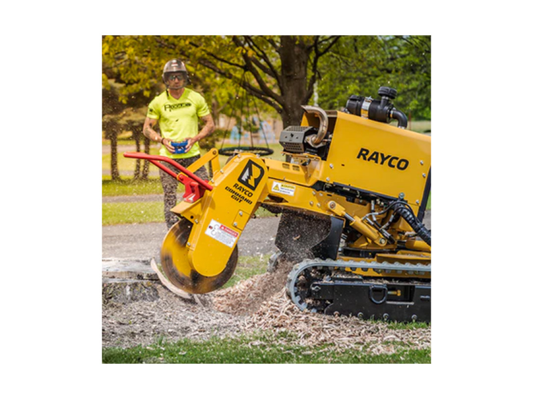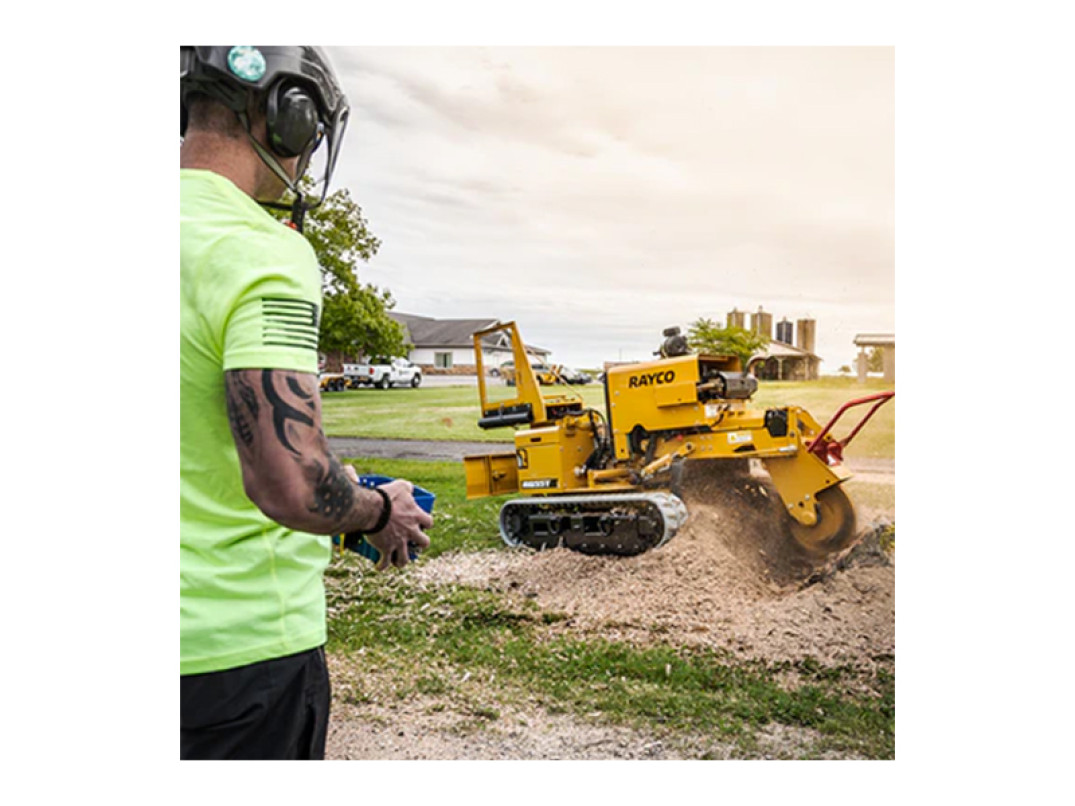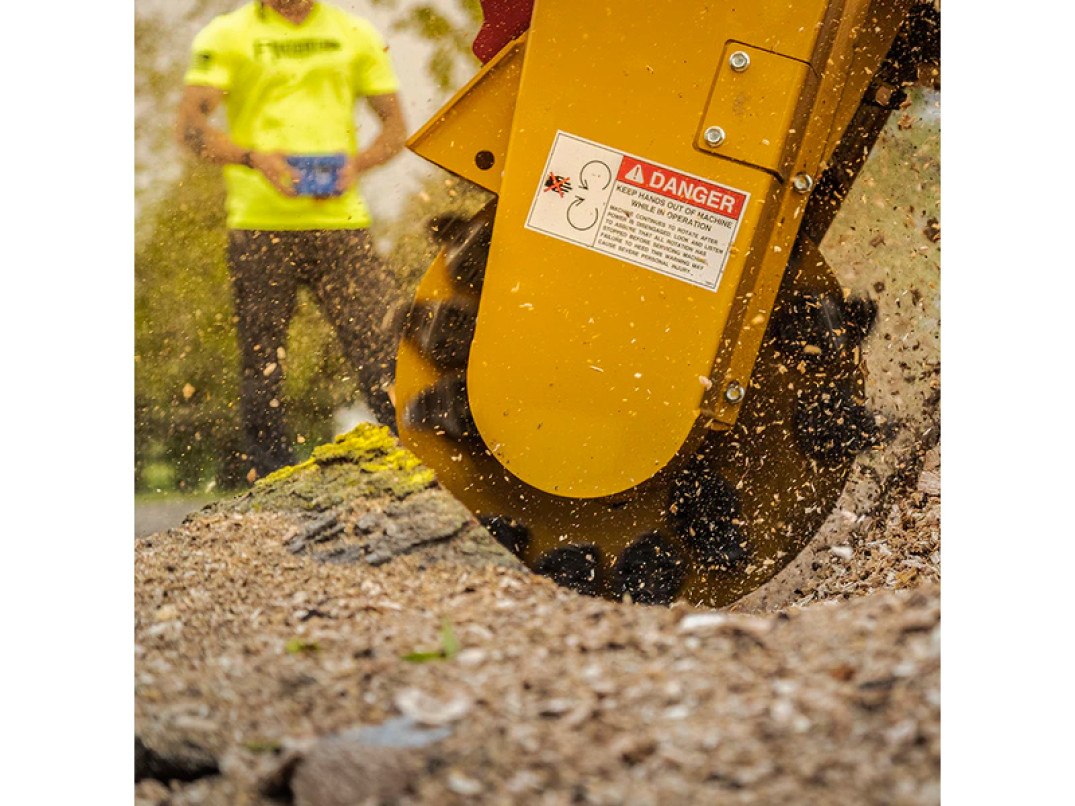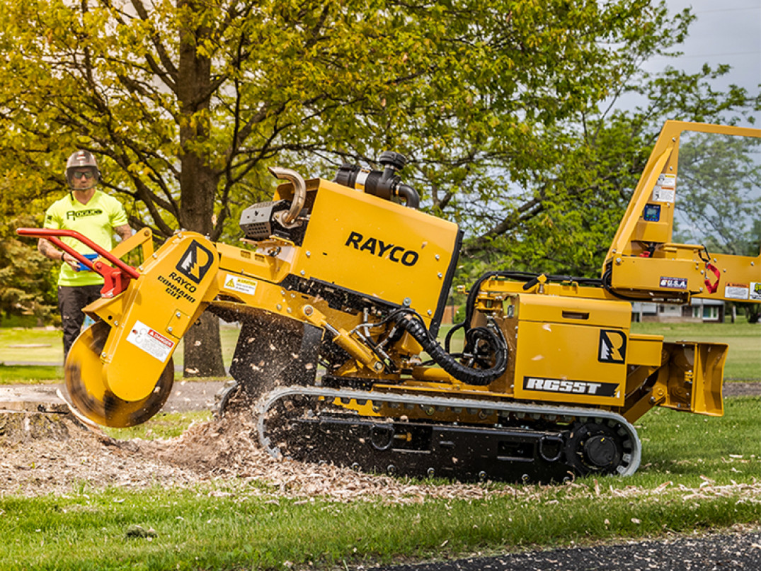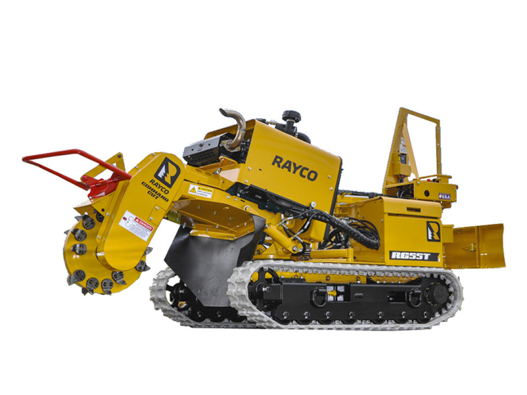 Il fresaceppi RG55-T è dotato di disco di taglio con 24 denti Super Tooth®, motore Kubota da 55 hp, cingoli in gomma antitraccia e lama di riempimento idraulica.