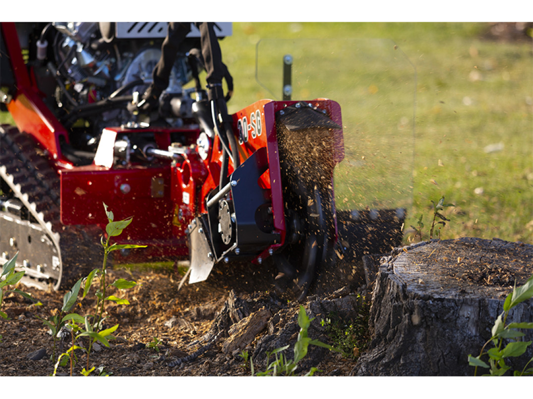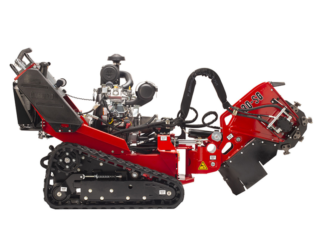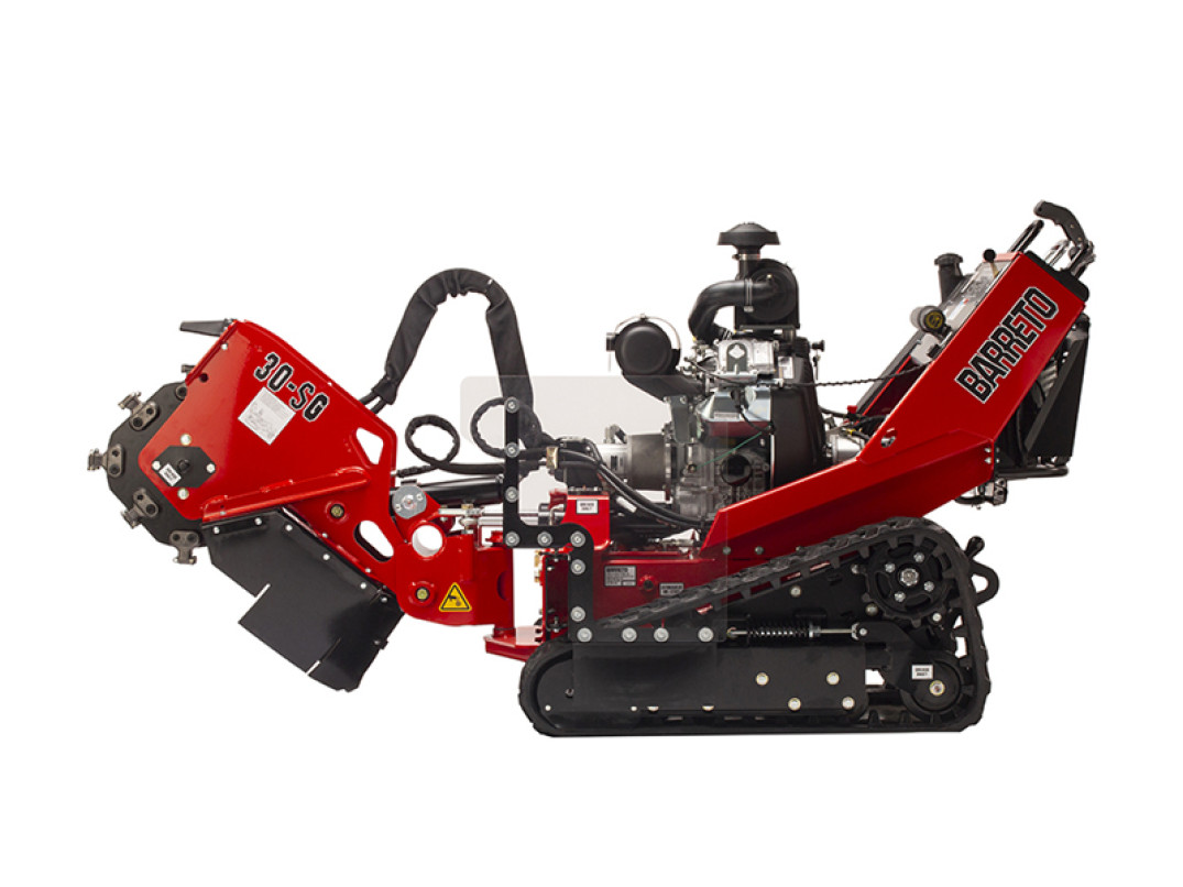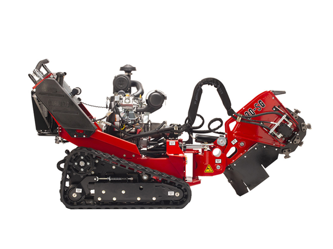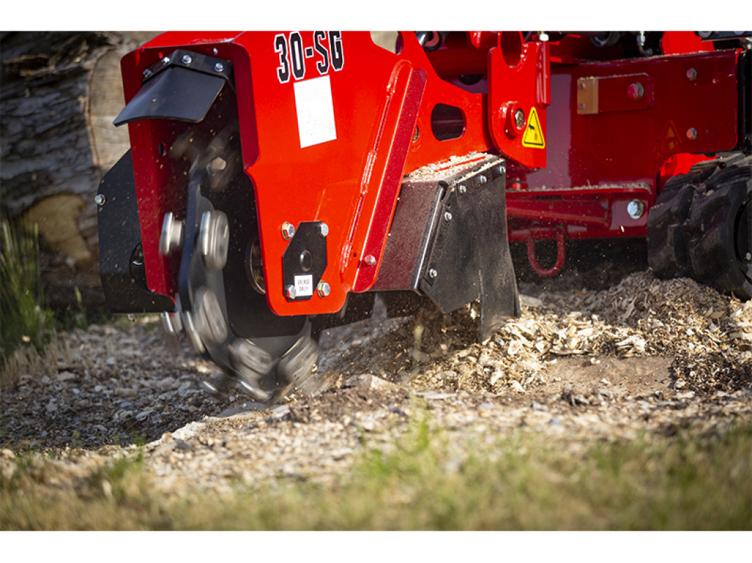 Il fresaceppi SG30 è equipaggiato con un disco di taglio da 16 denti reversibili Green-Teeth serie 700, trasmissione idraulica che permette di abbassarlo e direzionarlo verso destra e sinistra.