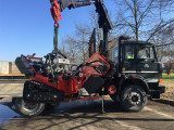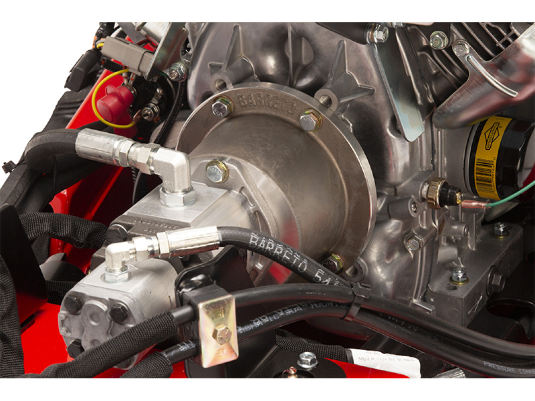 È alimentato da un motore V-Twin Briggs & Stratton Vanguard da 31 hp con due pompe a ingranaggi, una più grande che aziona il disco di taglio, mentre la più piccola aziona i pistoni per il brandeggio del disco.