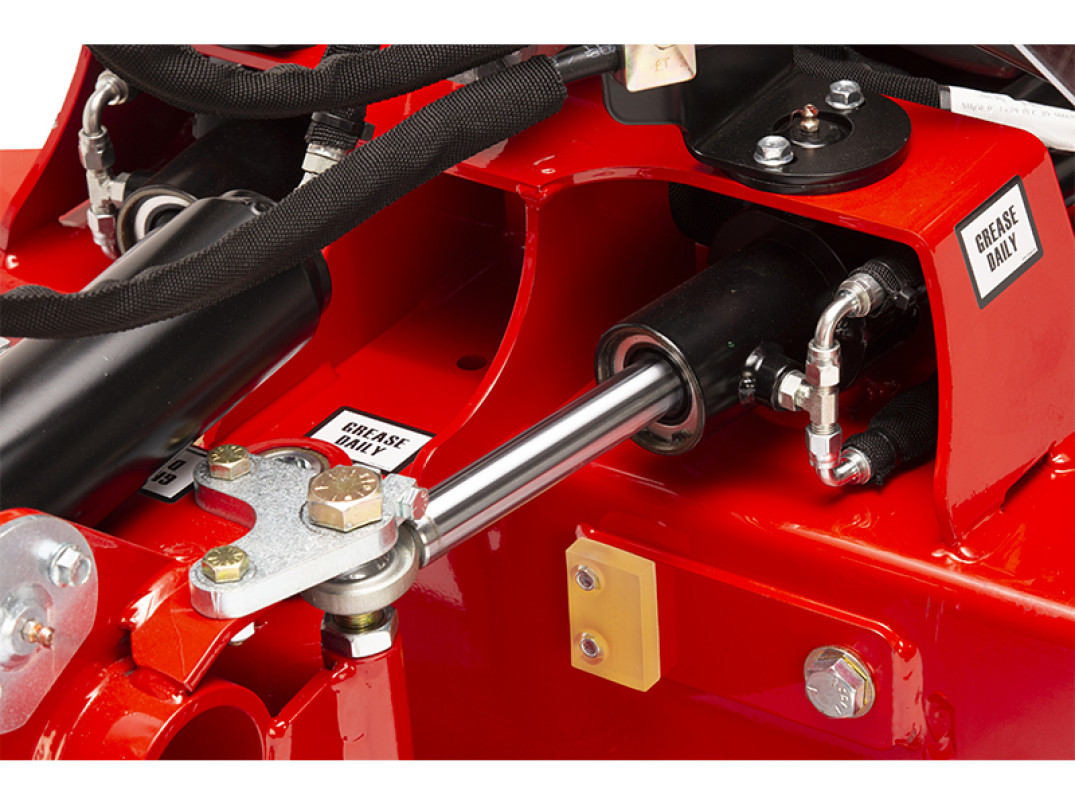 I cingoli trazionati sono azionati da pompe idrostatiche indipendenti montate sulla parte posteriore del motore per un facile accesso e un semplice controllo dei tiranti delle leve.