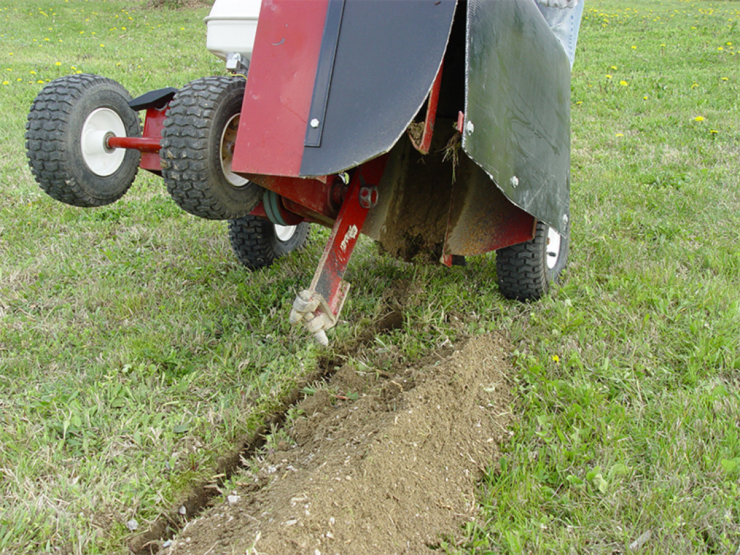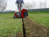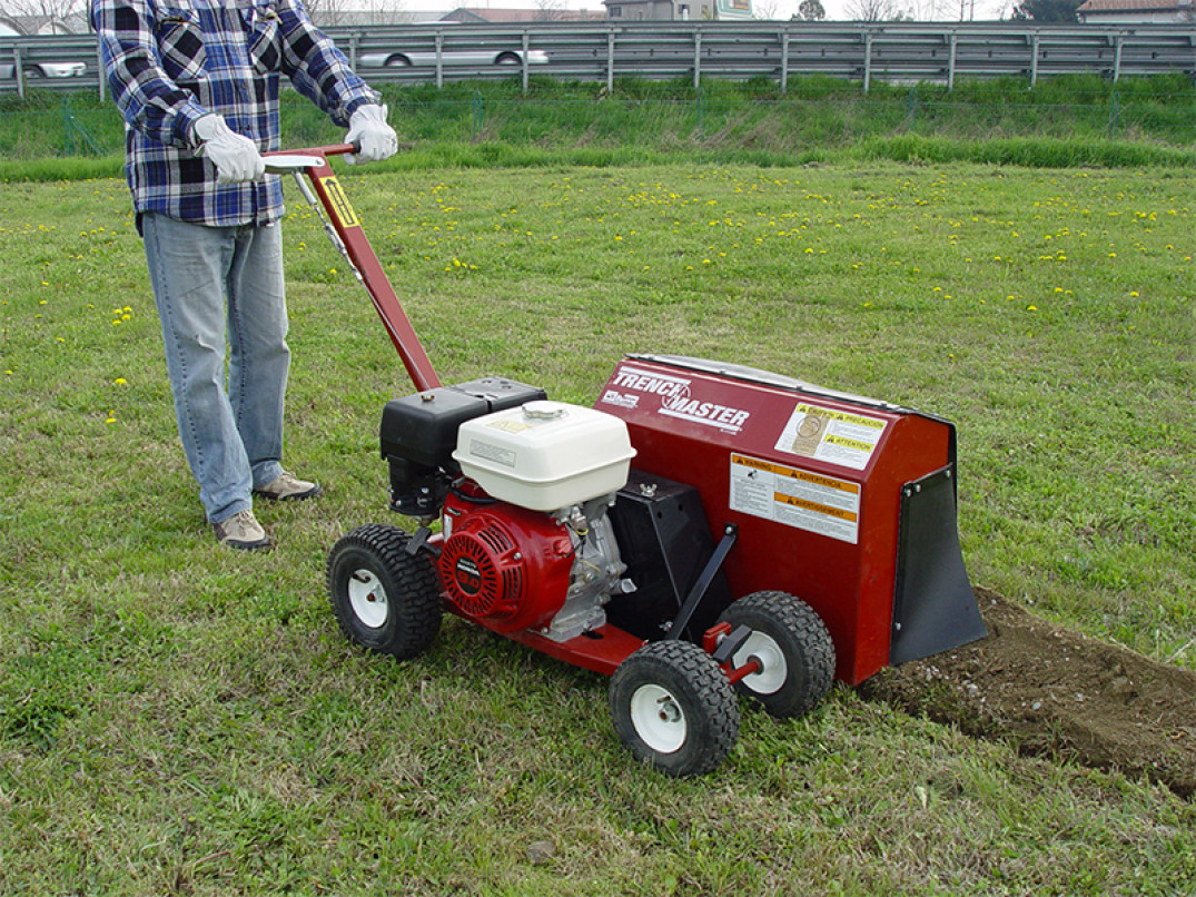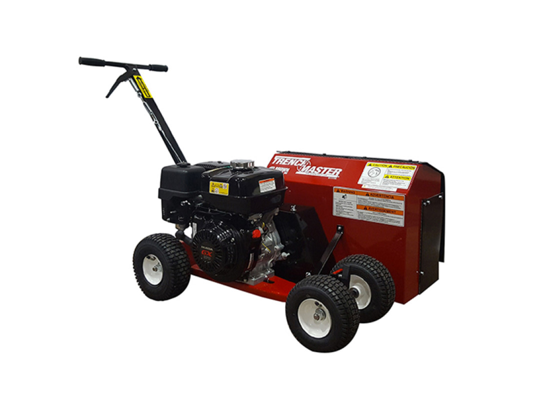 La TRENCH-MASTER è una scavatrice a lama rotativa con motore Honda da 9 hp. La larghezza di lavoro può variare da 12 mm a 22 cm, mentre la profondità da 5 a 23 cm, a seconda del tipo di lama utilizzata.