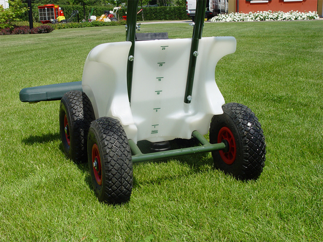 È formata da una robusta pompa azionata da una cinghia, a sua volta collegata all'asse delle ruote anteriori. Il semplice movimento ne permette il funzionamento, ottenendo una distribuzione volumetrica in grado di coprire una superficie pari a 625 mq in meno di 20 minuti.