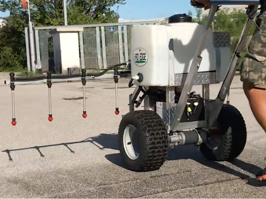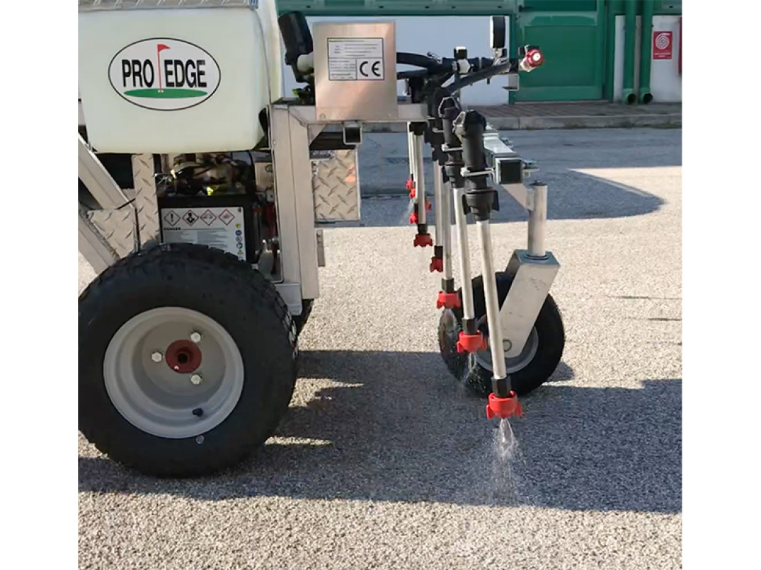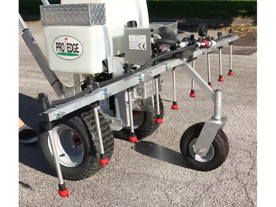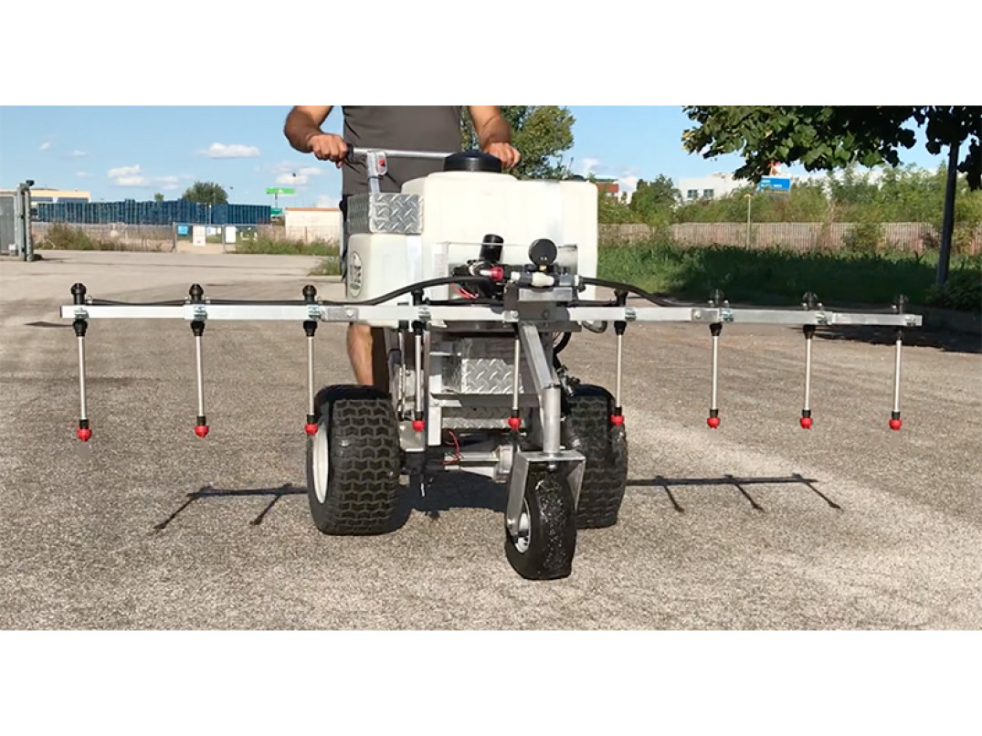 È dotata di 7 ugelli distanziati 25 cm, un serbatoio da 30 litri e una pompa ad alto volume da 19 litri/minuto.