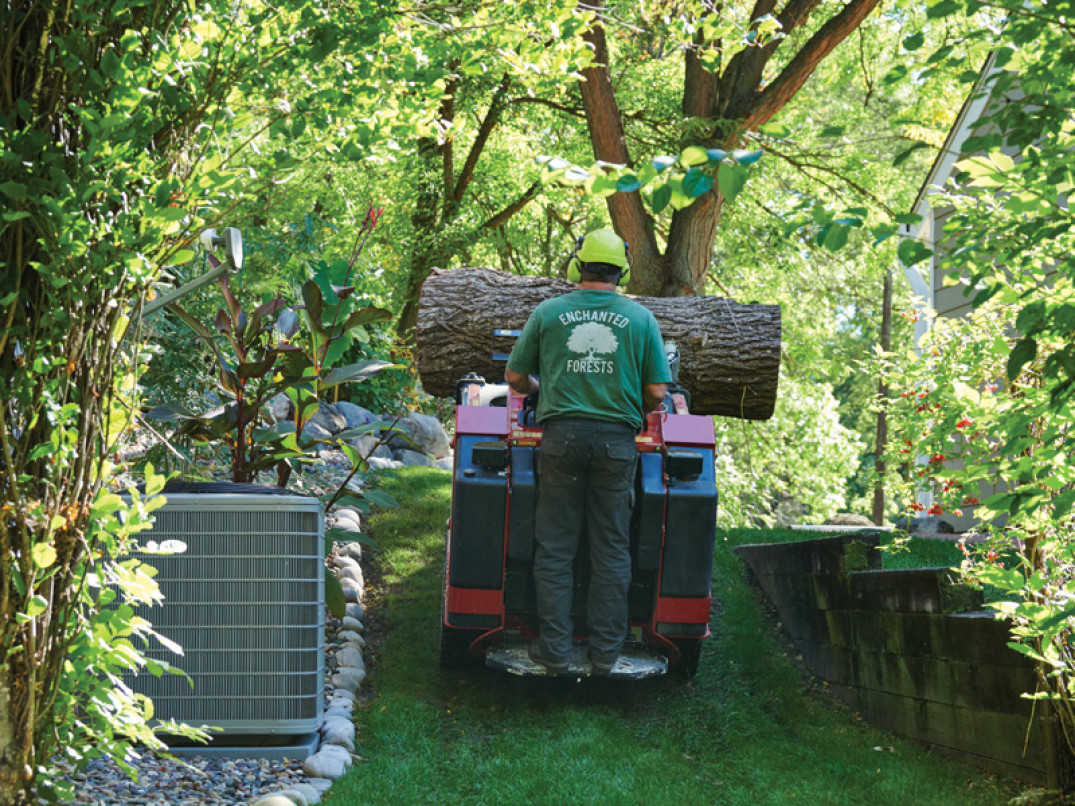 La larghezza delle forche è regolabile, ciò consente di trasportare un'ampia varietà di materiali nell'area di lavoro, ad esempio rocce, tronchi, pallets, ecc.