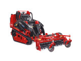 Rastrello a motore con larghezza di lavoro di 122 cm e ruote regolabili ideale per la preparazione del letto di semina.