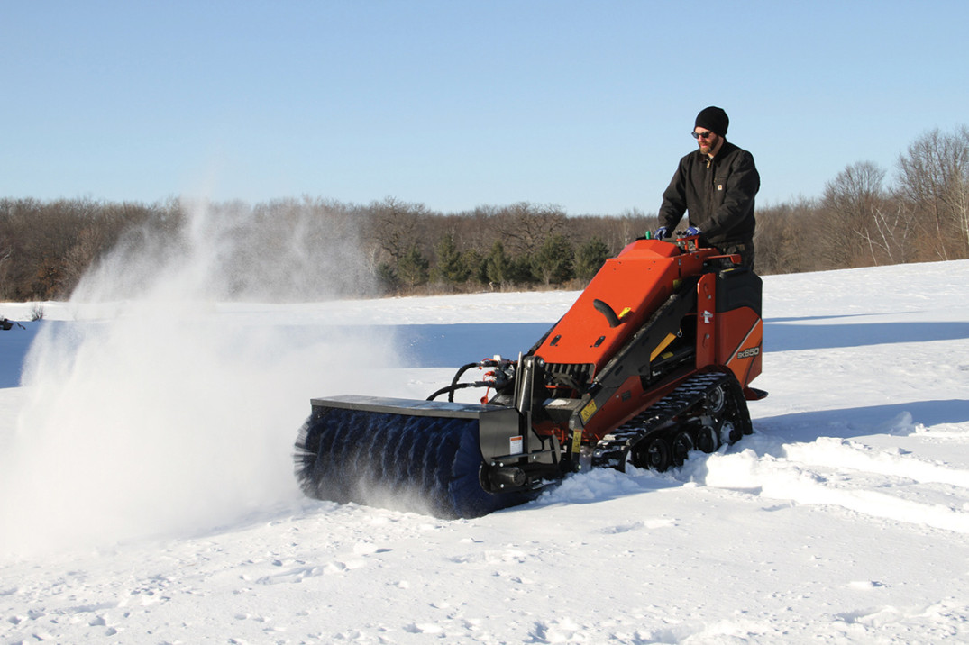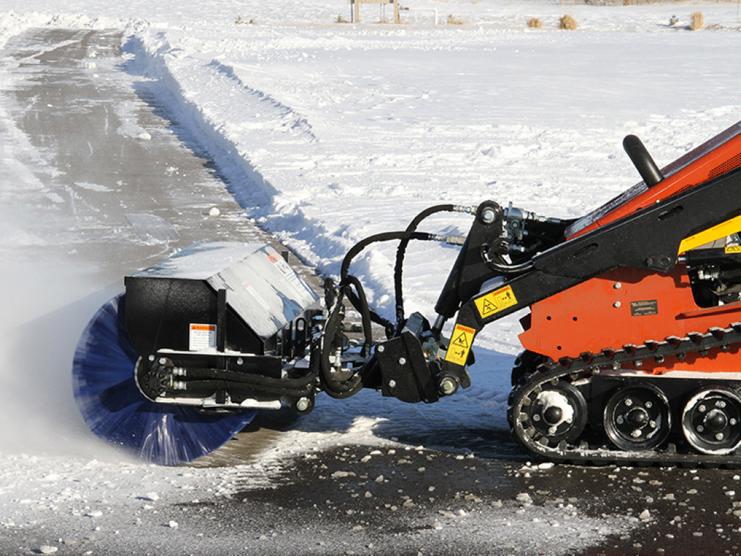 La spazzola è inclinabile fino a 25° a destra e a sinistra ed è stata progettata per lo spazzolamento di sporco pesante, neve ed altro materiale indesiderato.
