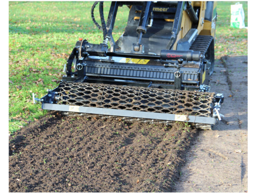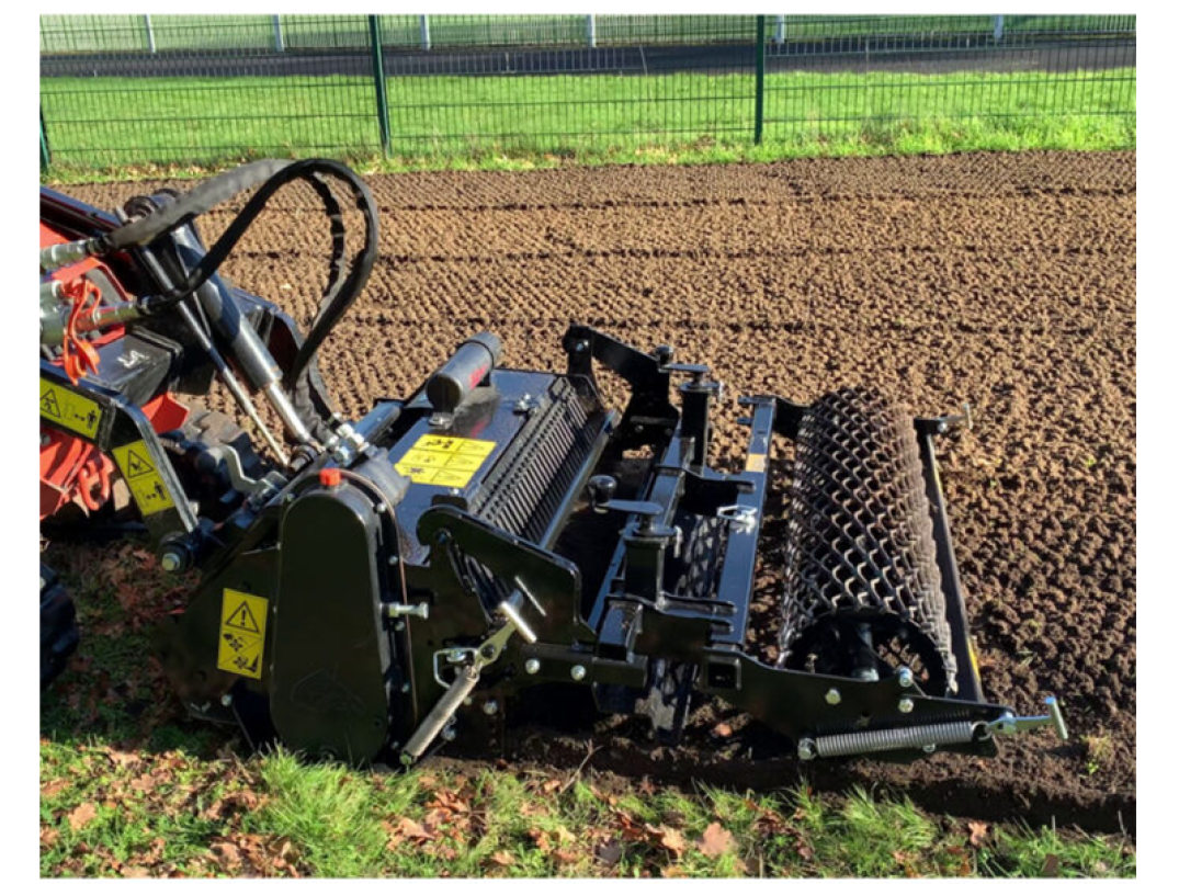 Consente la creazione o il risanamento di aree verdi preparando il letto di semina prima della posa del tappeto erboso. L'attrezzo è multiuso e consente di fresare, interrare (pietre, detriti, erba...), livellare, impastare e rullare la superficie. L'utilizzo avviene direttamente o su un terreno precedentemente decompattato in profondità e ripulito dai sassi di grandi dimensioni.