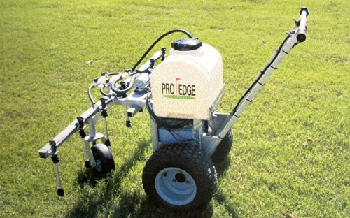 Irroratrice a spinta a batteria, serbatoio da 30 litri.