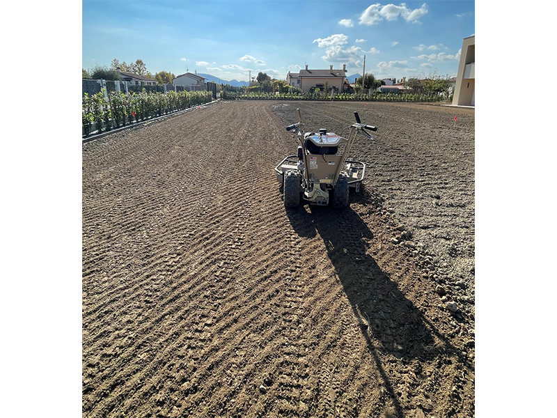 Il rastrello a motore Pre-Seeder della TURF TEQ è lo strumento ideale per risparmiare tempo nei lavori di preparazione del letto di semina, infatti rastrella, frantuma e livella il terreno di medie dimensioni in un unico passaggio.