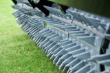 La rigeneratrice vibrante AE-40-S con rotore formato da rulli porta denti di piccole dimensioni ha una larghezza di lavoro di 100 cm ed è dotata di una tramoggia da 124 litri.