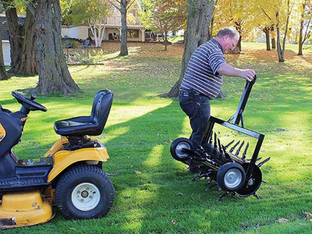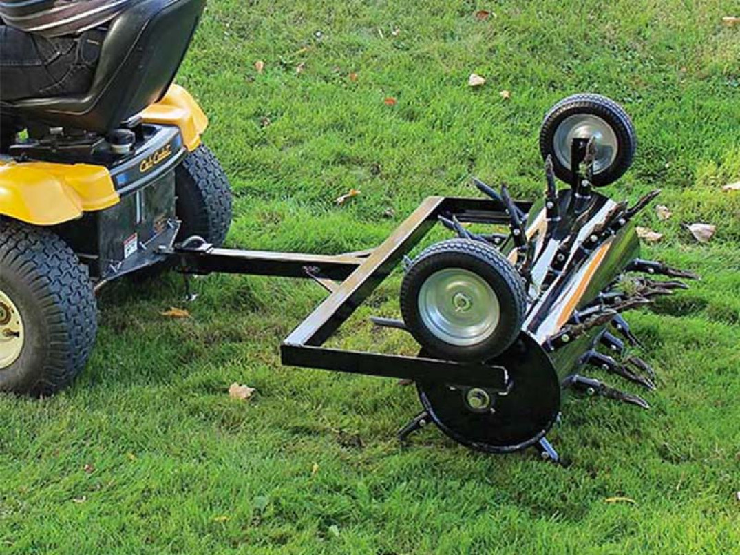 Il rullo arieggiatore MSP36 ha una larghezza di lavoro di 91 cm ed è dotato di 36 fustelle con cui può raggiungere una profondità nel terreno fino a 10 cm.