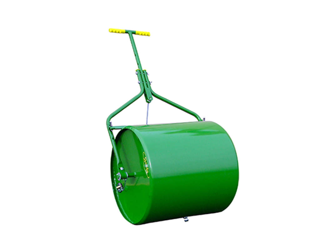 Rullo compattatore professionale in acciaio, reversibile da manuale a traino e viceversa con diametro 61 cm, larghezza 61 cm e zavorrabile fino a 221 kg. L'apertura di riempimento è da 5 cm con tappo.