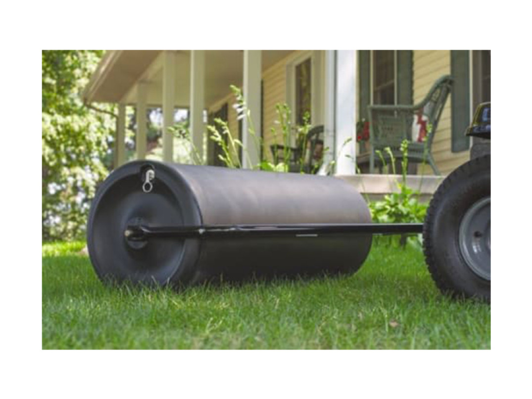 Il rullo compattatore 90P Agri-Fab è realizzato in plastica. Zavorrabile con acqua, può variare il suo peso da 23 kg vuoto a 181 kg pieno. Ha una larghezza di lavoro di 90 cm e un diametro di 46 cm.