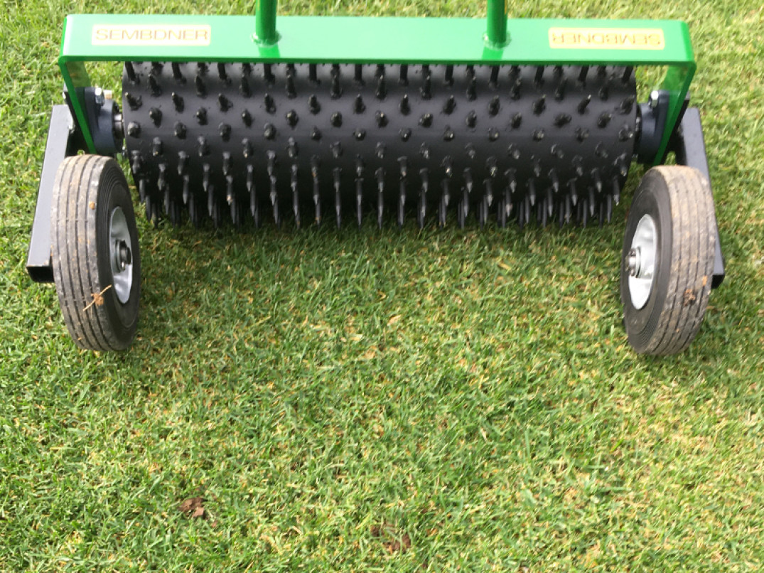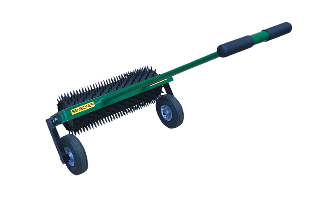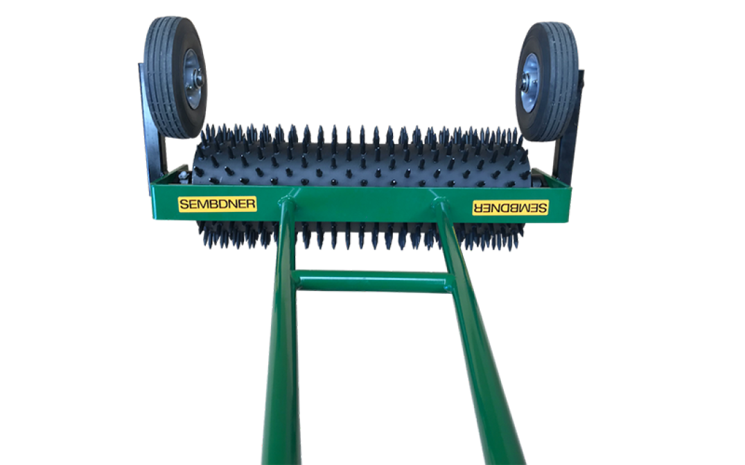 Il rullo ad aghi arieggiatore e per semine-risemine della Sembdner realizza fino a 1500 fori al mq con un facile movimento, grazie anche alle ruote di supporto semi pneumatiche.