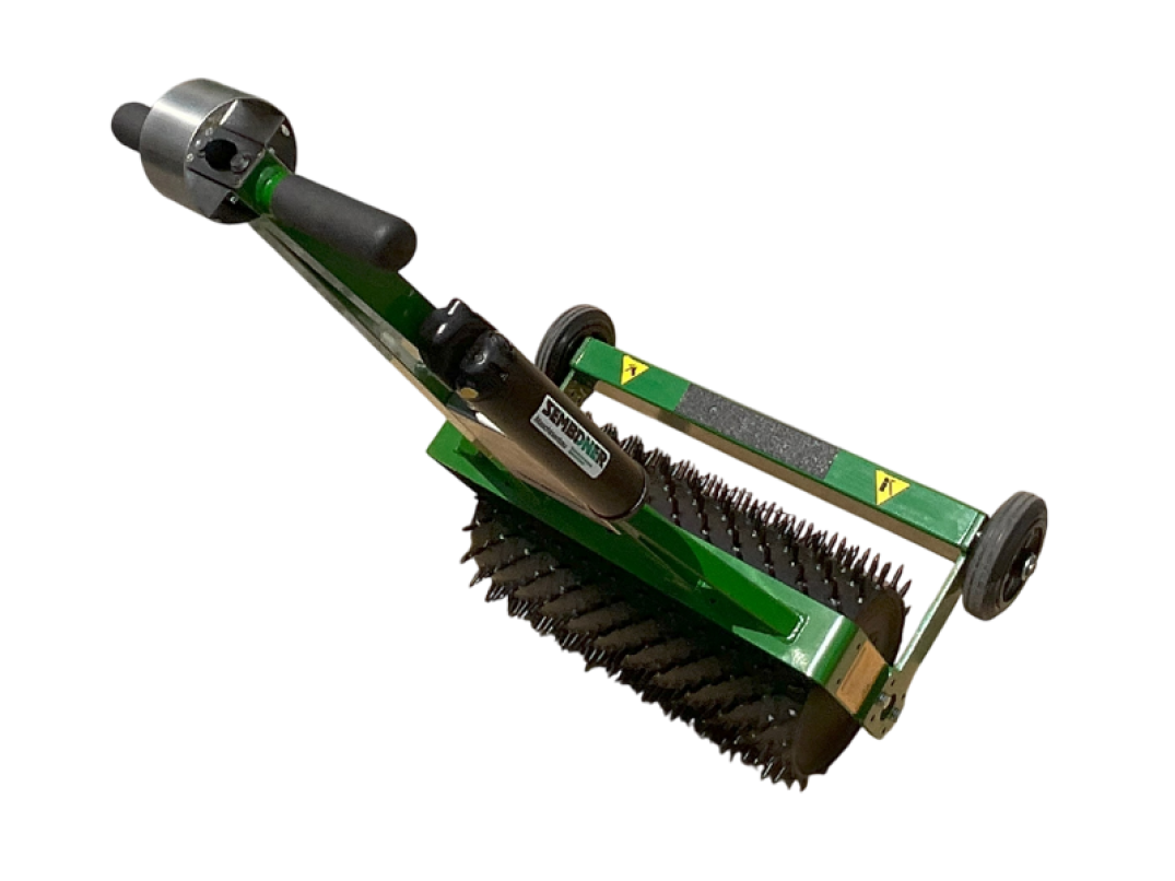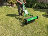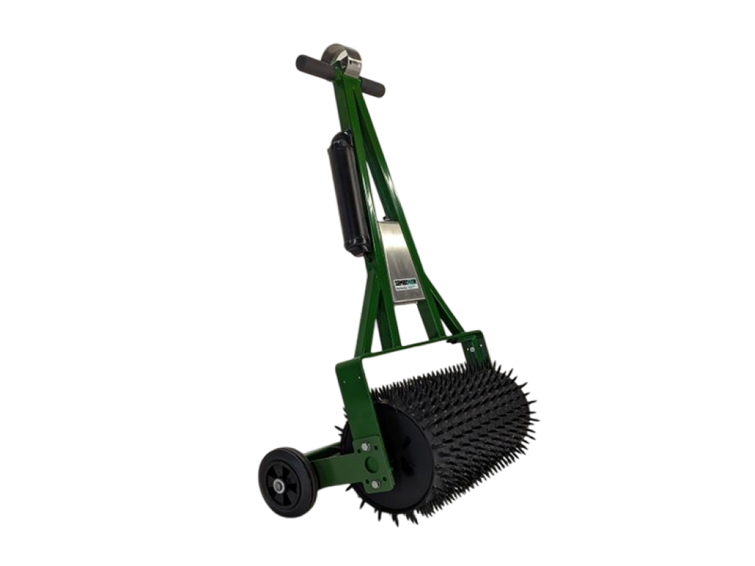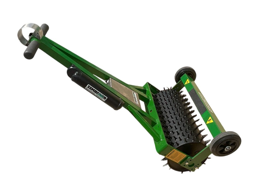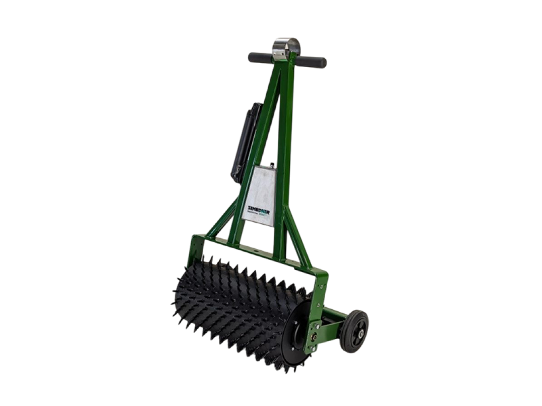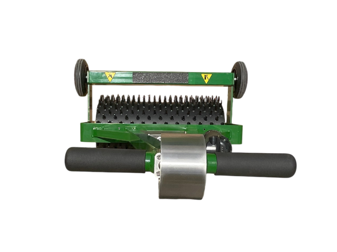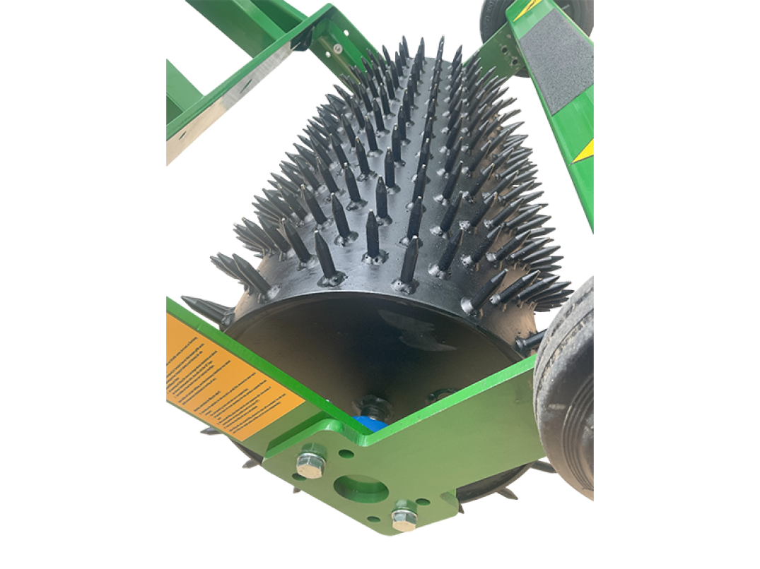 Il rullo ad aghi semovente a batteria per semine-risemine della Sembdner ha una larghezza di lavoro di 60 cm, realizza 1300 fori al mq e copre fino a 1000 mq con una carica.