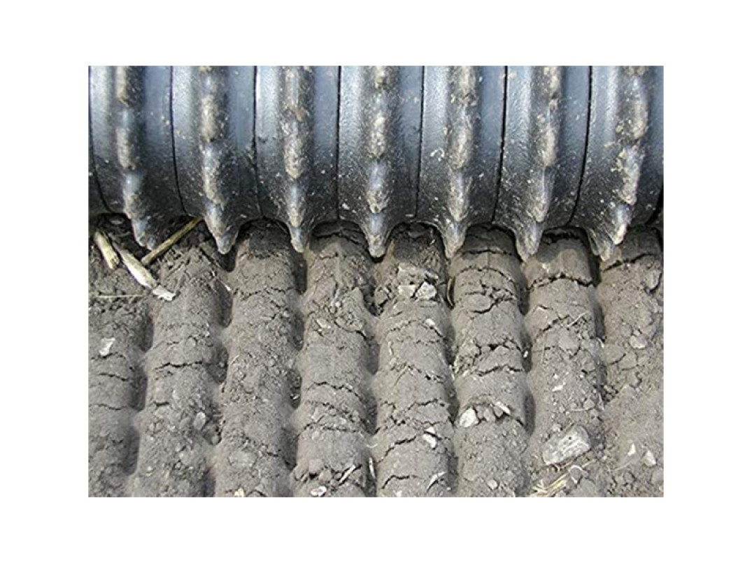 È dotato di 21 anelli in ghisa di qualità agricola con diametro 24 cm e maniglie di frantumazione che aiutano a ridurre le dimensioni della zolla e a creare fossette che trattengono l'umidità nel terreno.