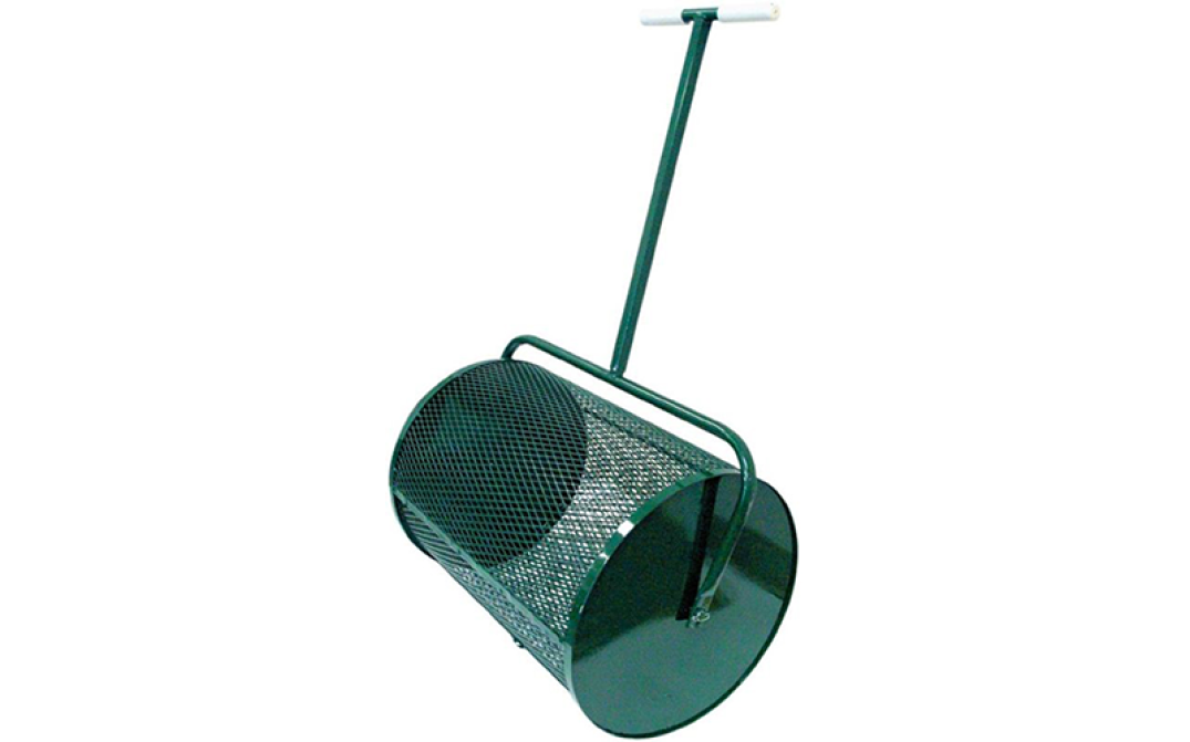 Il rullo manuale per distribuzione compost e terriccio modello 25A ha una capacità di 50 lt, larghezza di lavoro di 60 cm e diametro di 46 cm.