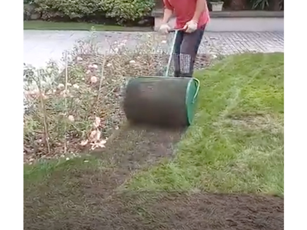 Permette di distribuire uniformemente il terriccio o compost sul tappeto erboso.