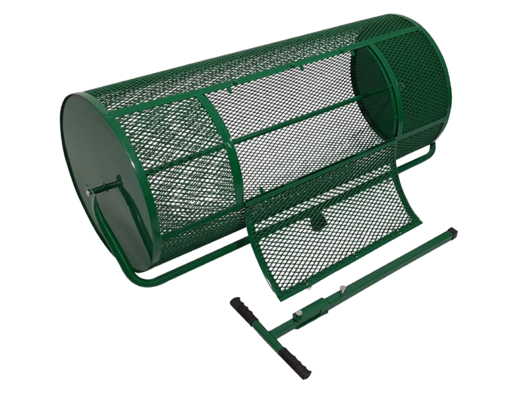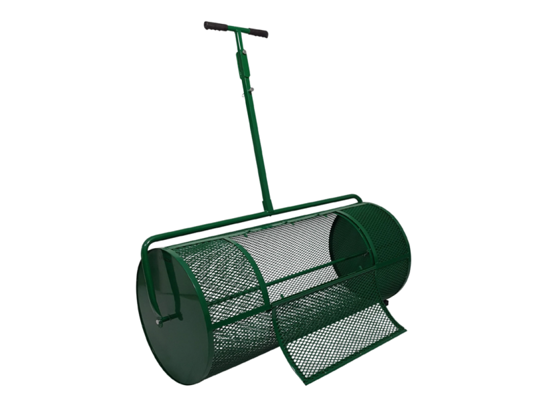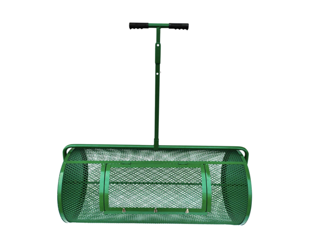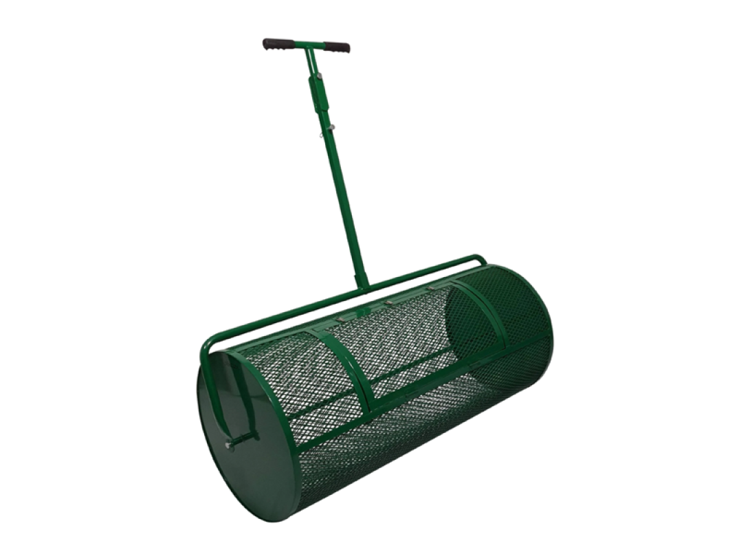 Il rullo manuale per distribuzione compost e terriccio modello 30A ha una capacità di 200 lt, larghezza di lavoro di 110 cm e diametro di 48 cm.